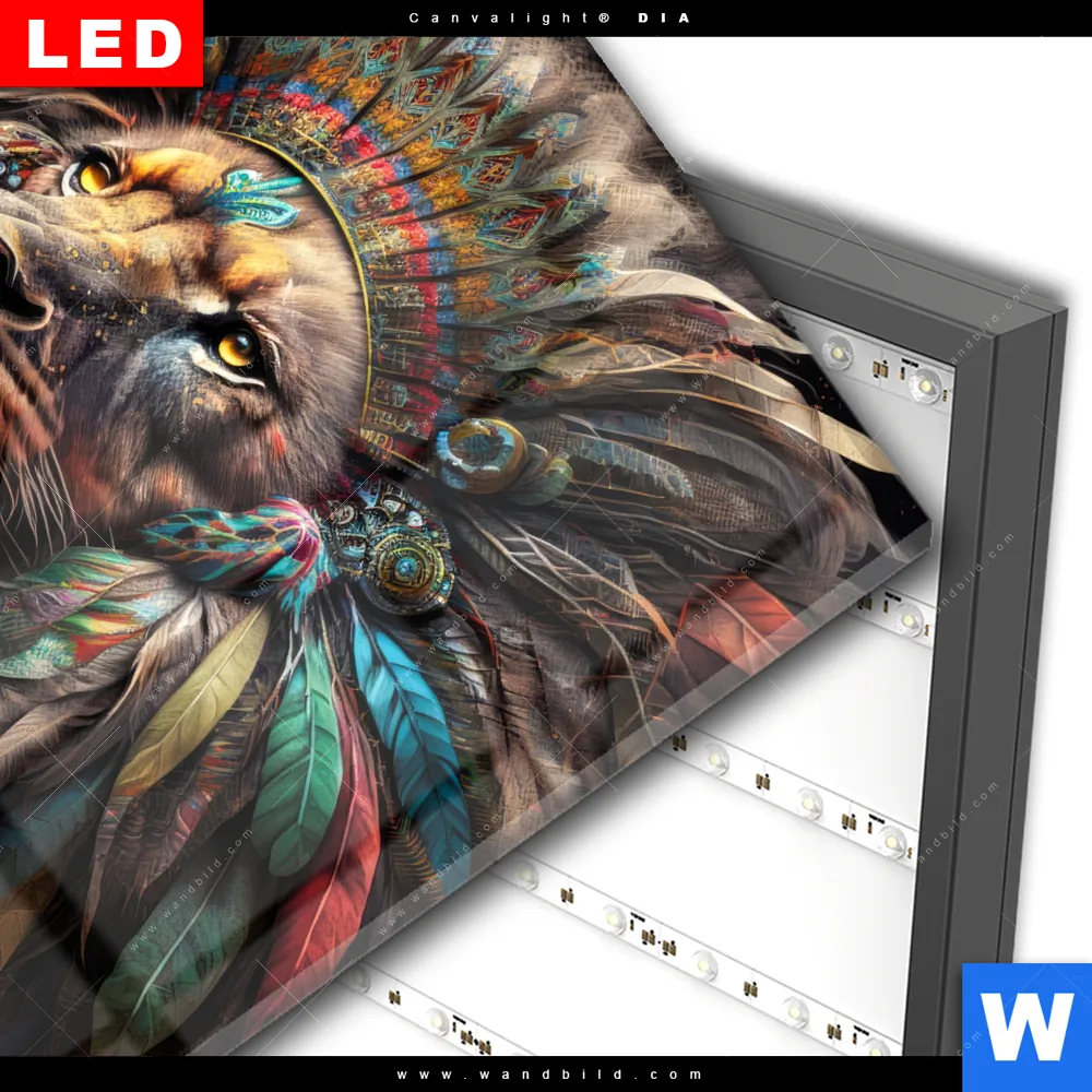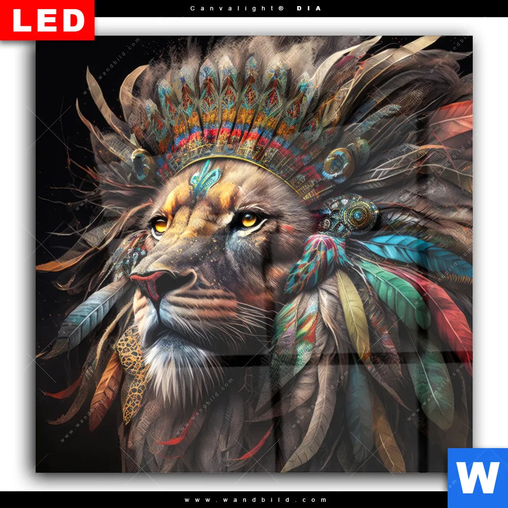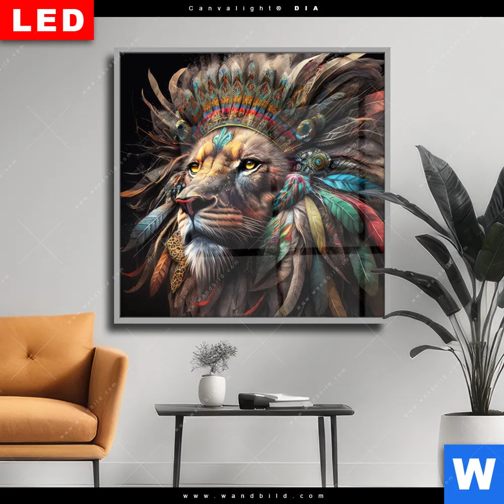 Wechselmotiv Acrylglas Canvalight® DIA | Löwenkopf mit bunten Federn | Quadrat