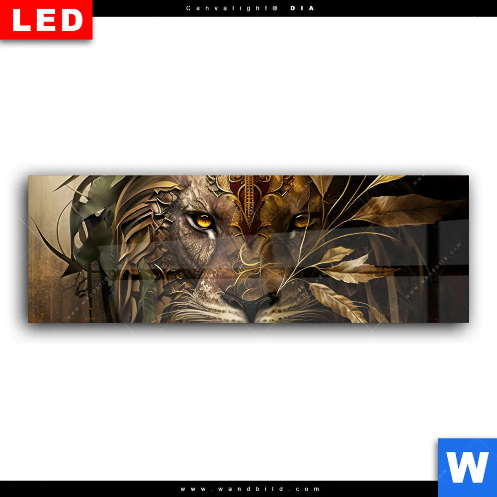 Wechselmotiv Acrylglas Canvalight® DIA | Löwenkopf mit Krone | Panorama