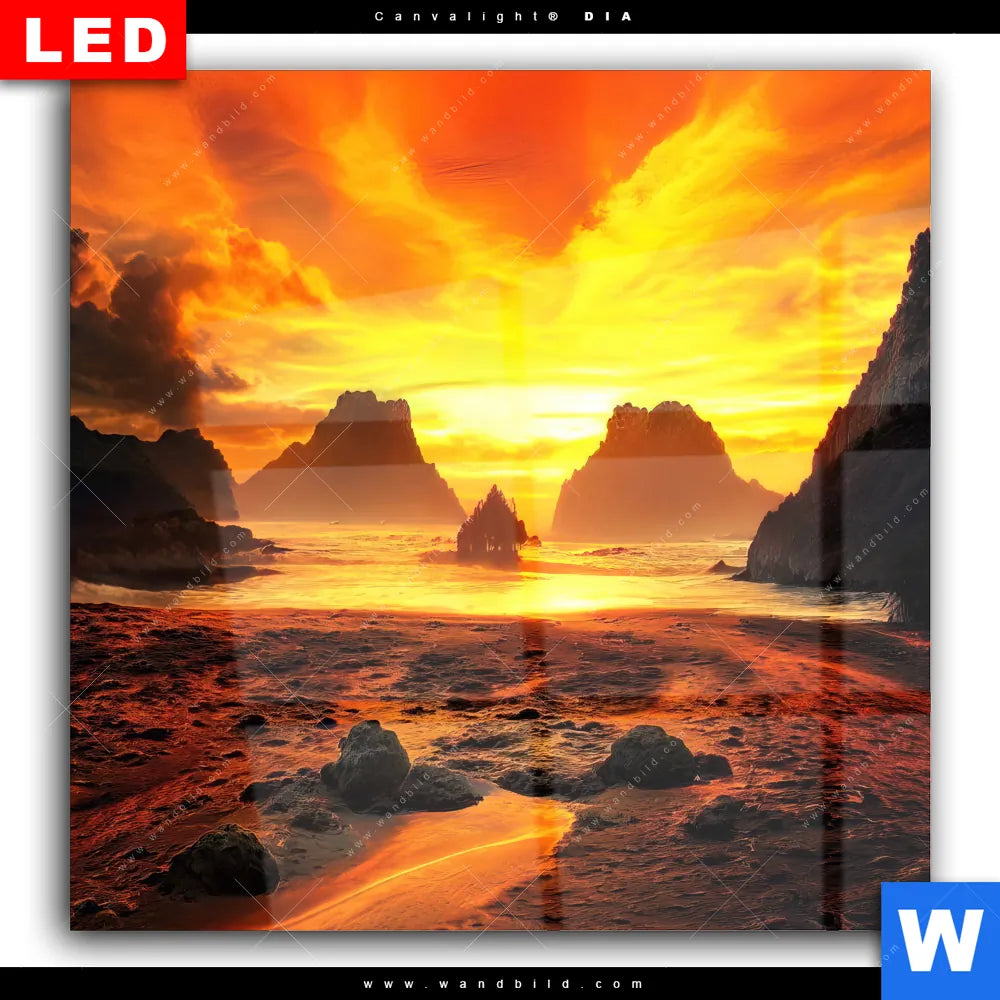Wechselmotiv Acrylglas Canvalight® DIA | Magische Steinlandschaft im Meer | Quadrat