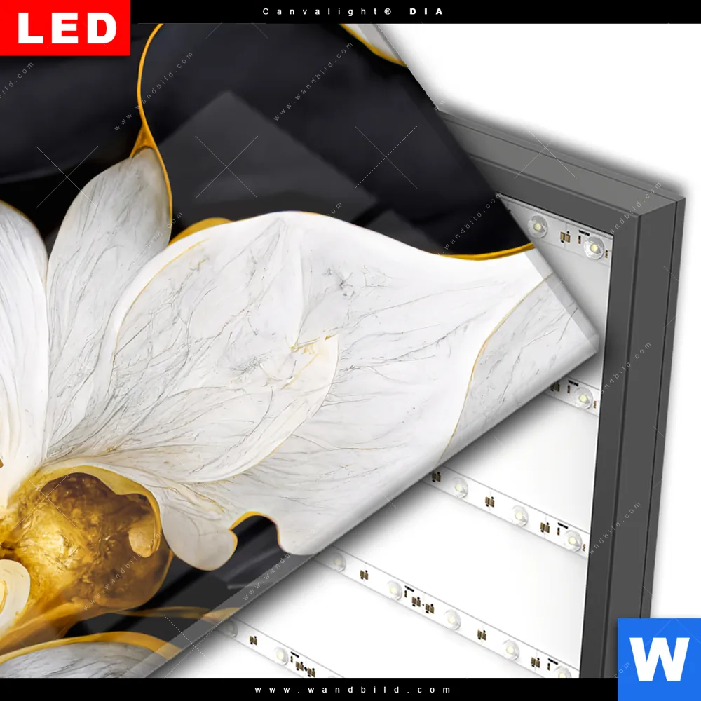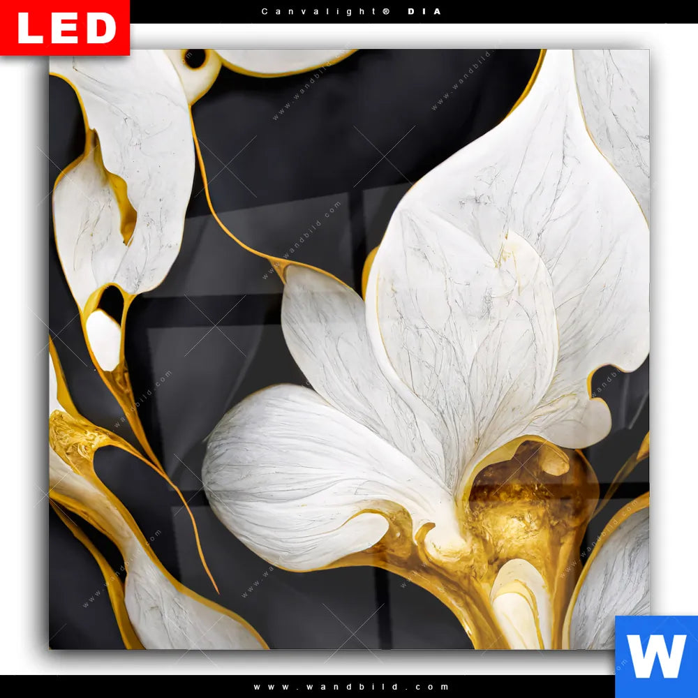 Wechselmotiv Acrylglas Canvalight® DIA | Marmor Blüten in weiß & gold | Quadrat