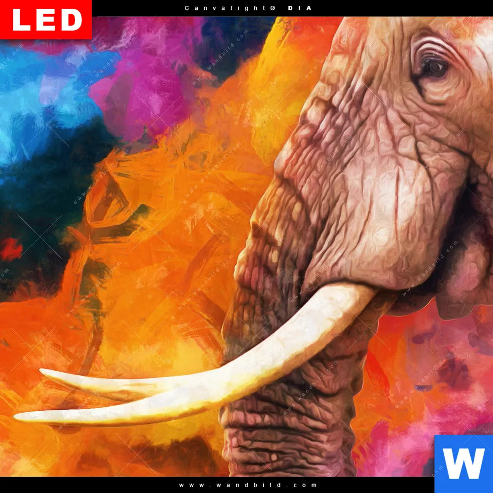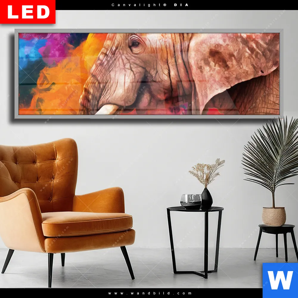 Wechselmotiv Acrylglas Canvalight® DIA | Moderner Bunter Elefant | Panorama