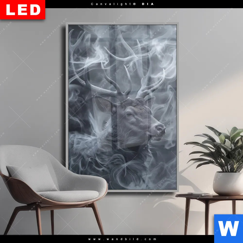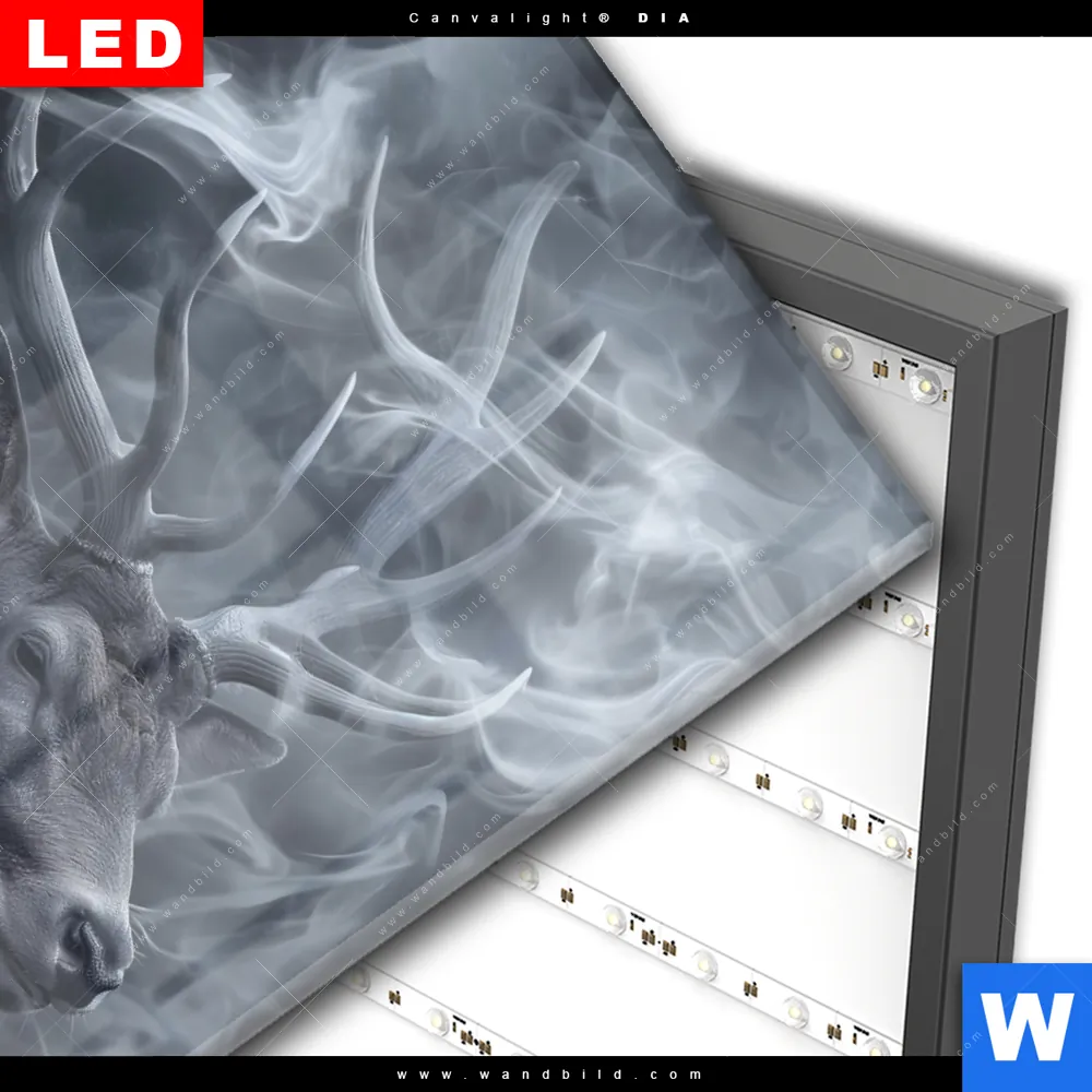 Wechselmotiv Acrylglas Canvalight® DIA | Mystischer Hirsch im Nebel | Hochformat