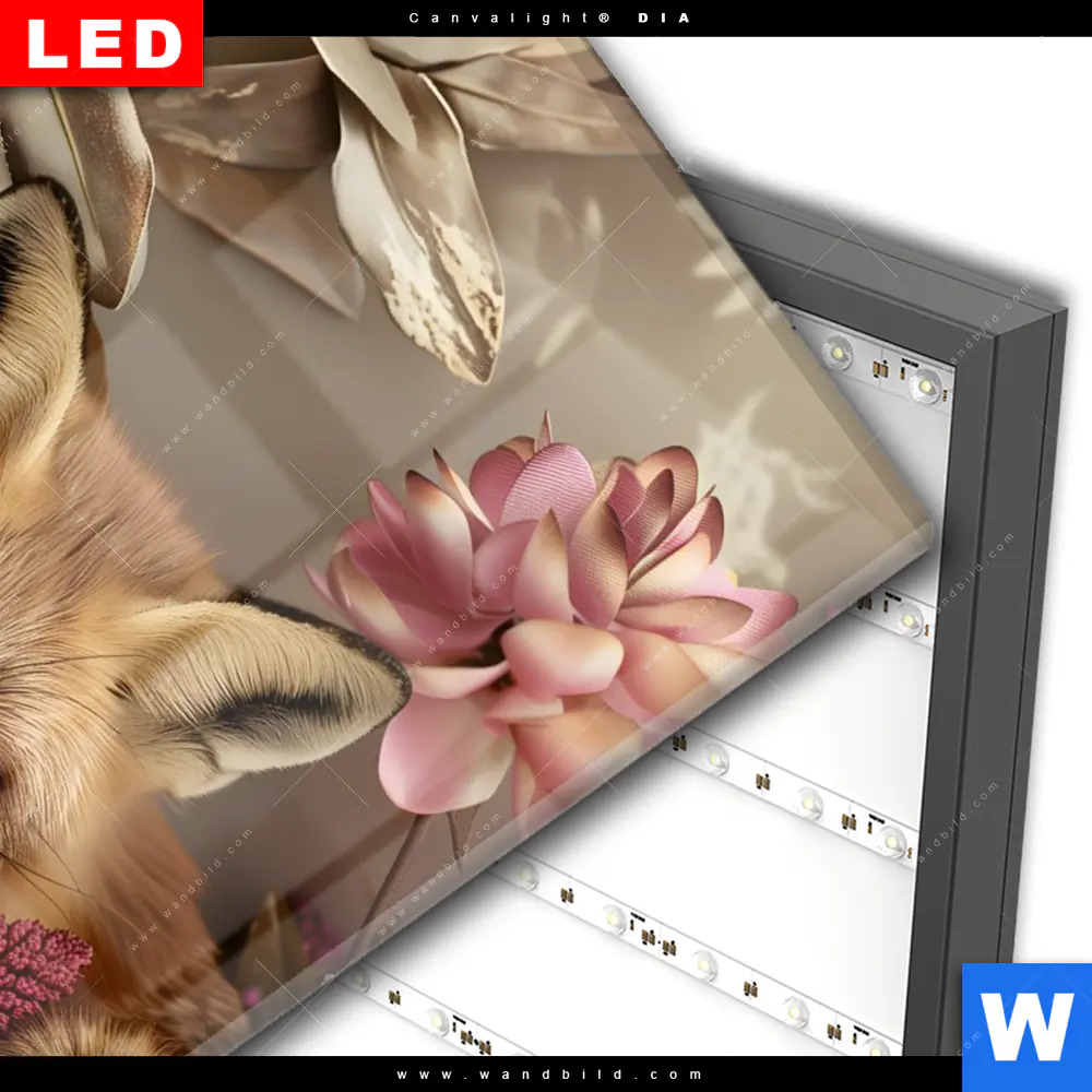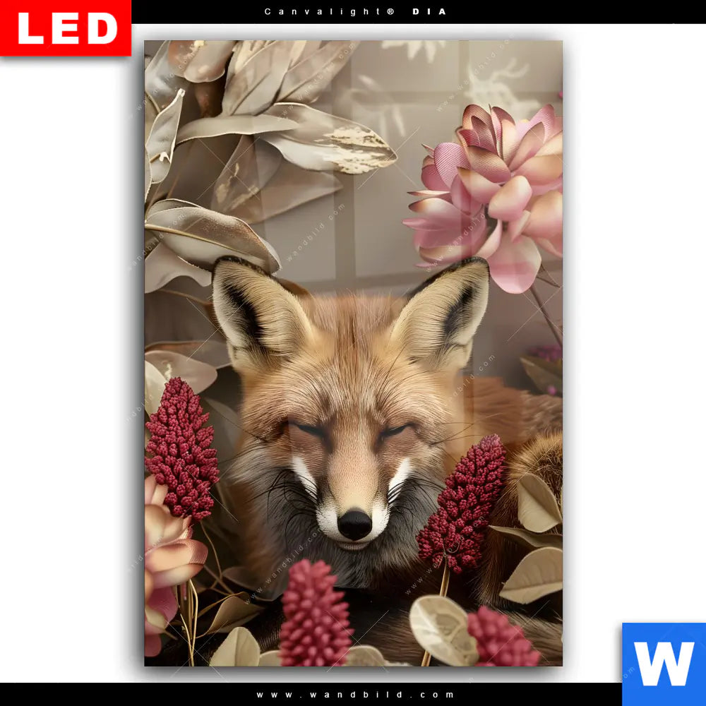 Wechselmotiv Acrylglas Canvalight® DIA | Naturbild Fuchs und Blumen | Hochformat