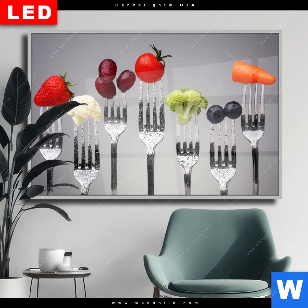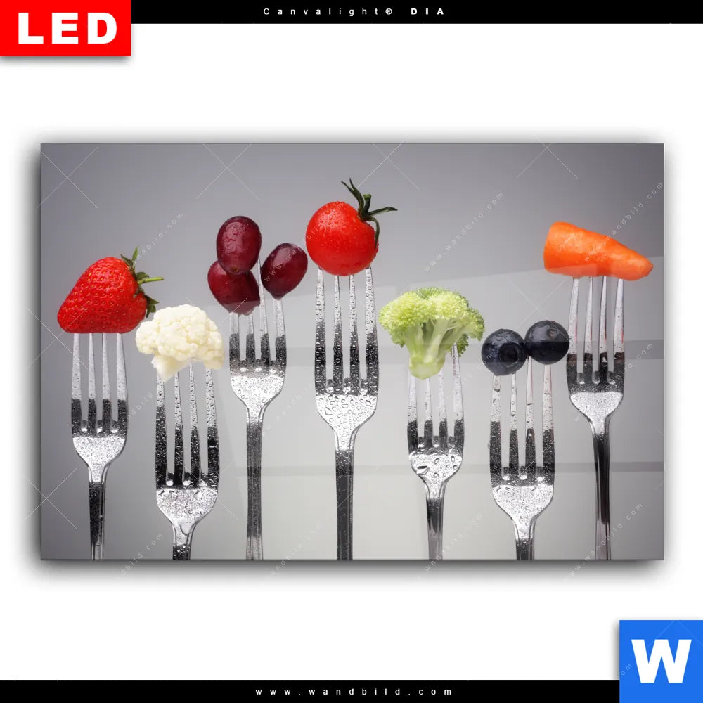 Wechselmotiv Acrylglas Canvalight® DIA | Obst & Gemüse auf Gabeln | Querformat
