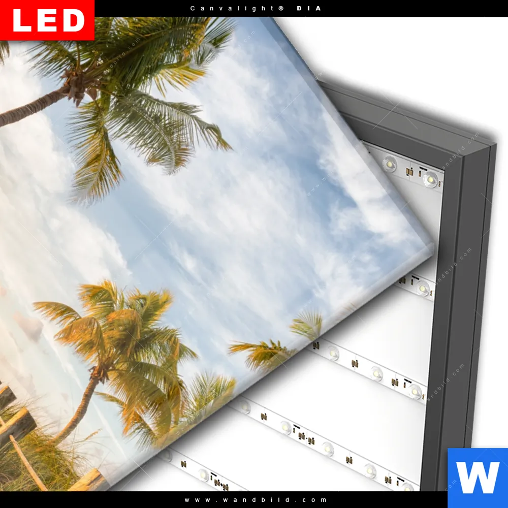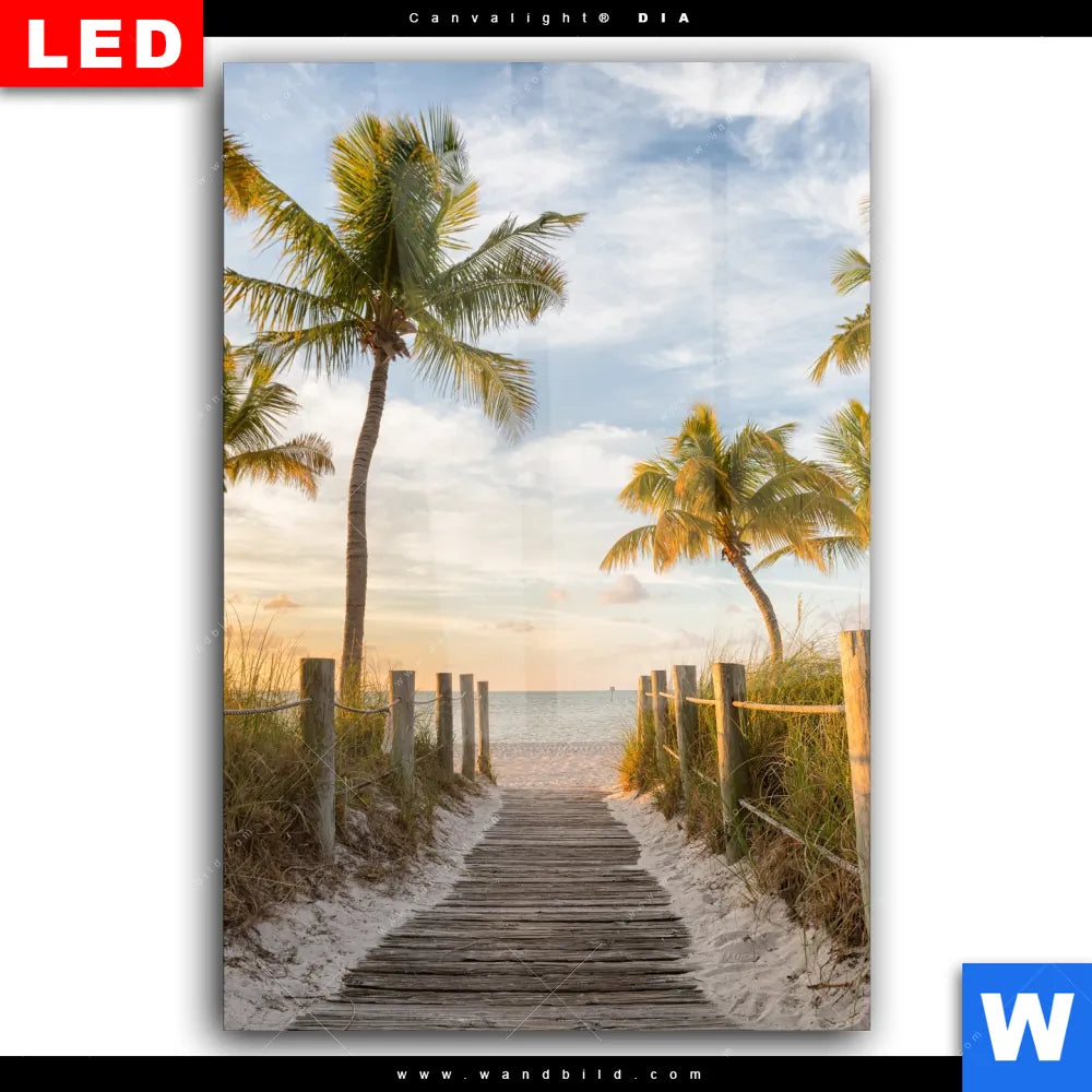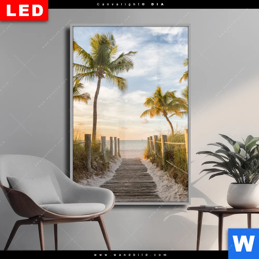 Wechselmotiv Acrylglas Canvalight® DIA | Palmen am Strandweg | Hochformat