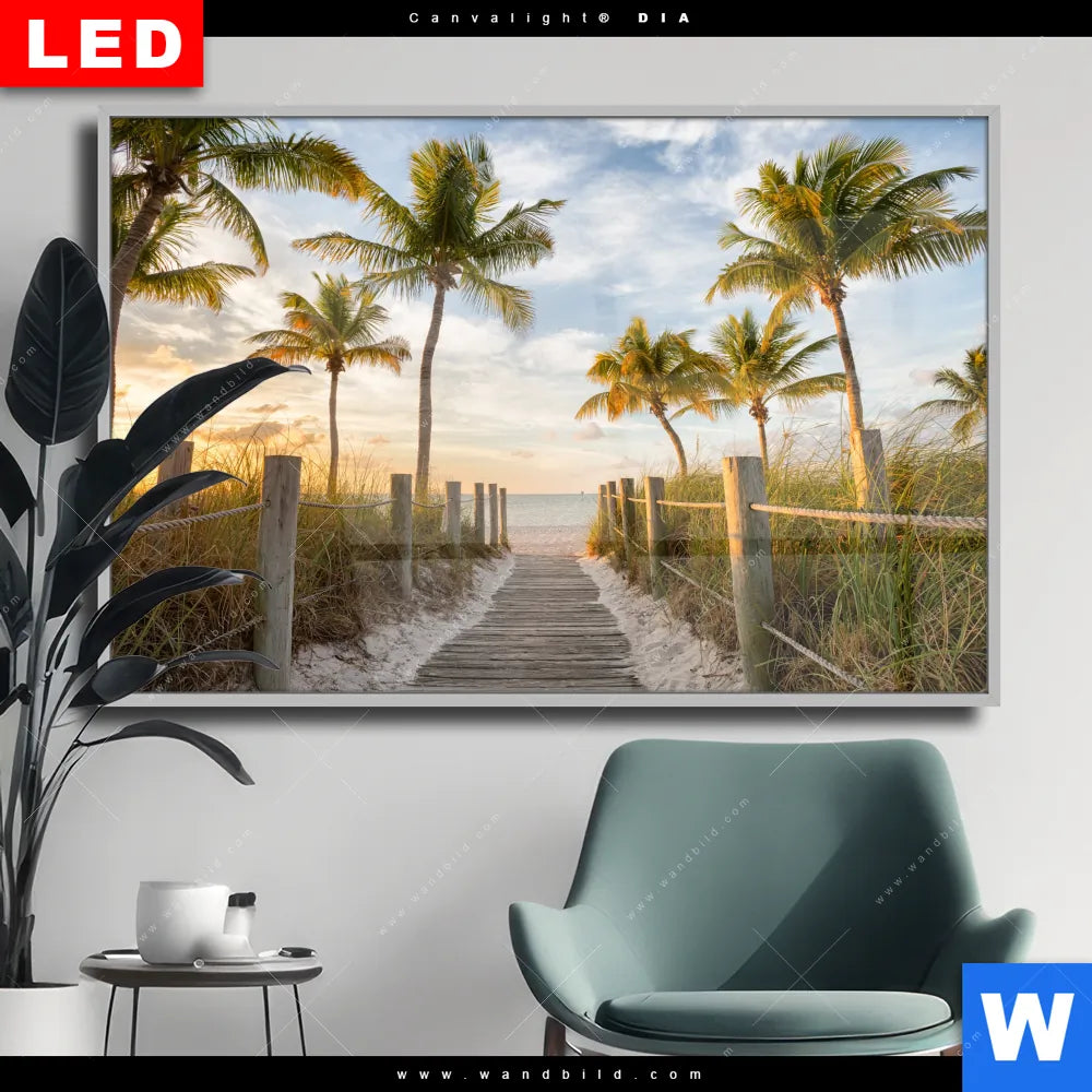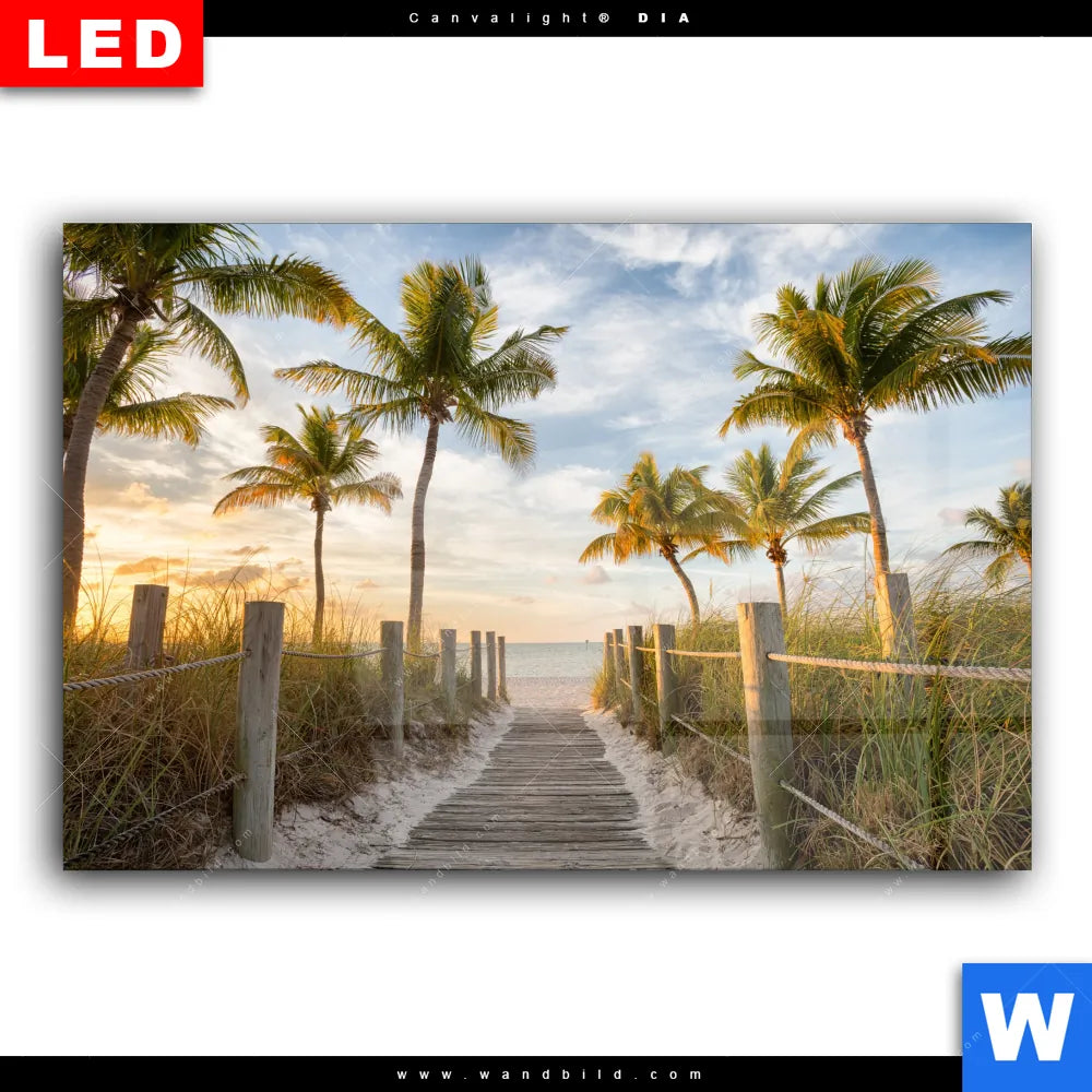 Wechselmotiv Acrylglas Canvalight® DIA | Palmen am Strandweg | Querformat
