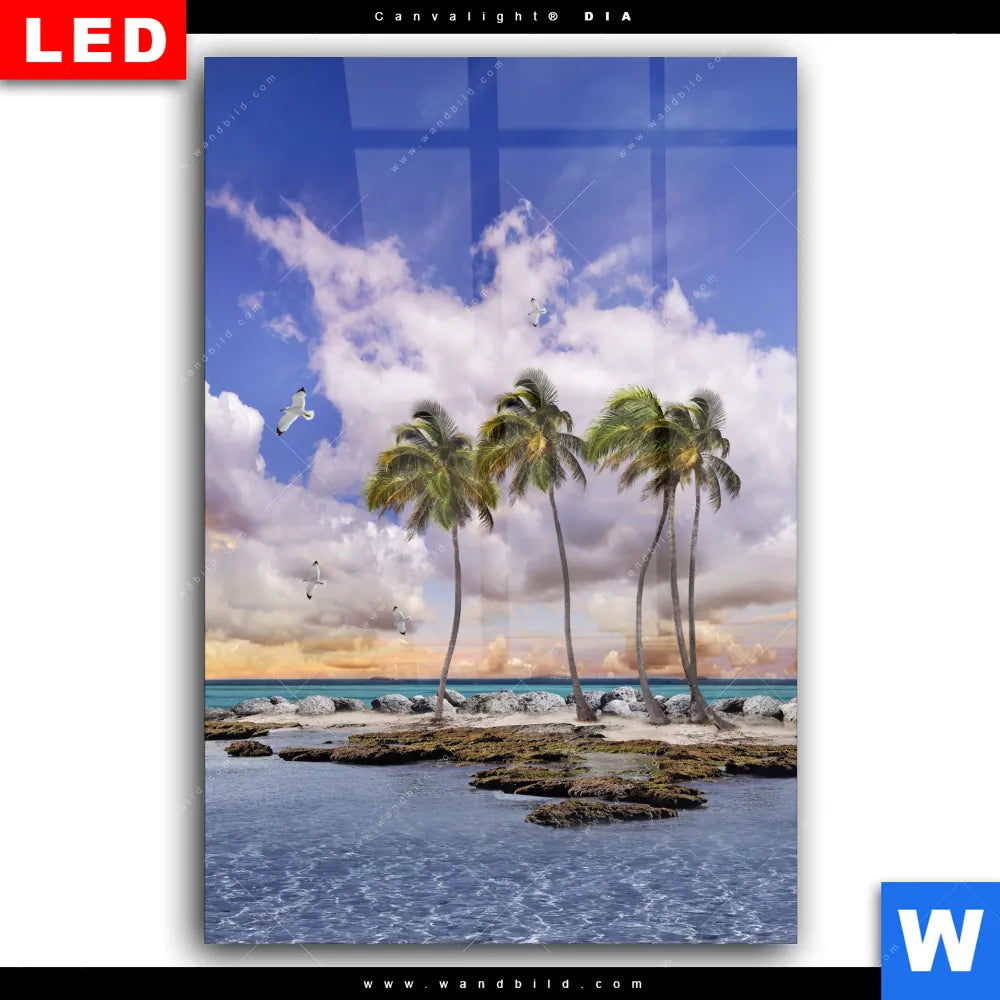 Wechselmotiv Acrylglas Canvalight® DIA | Palmen auf Insel | Hochformat