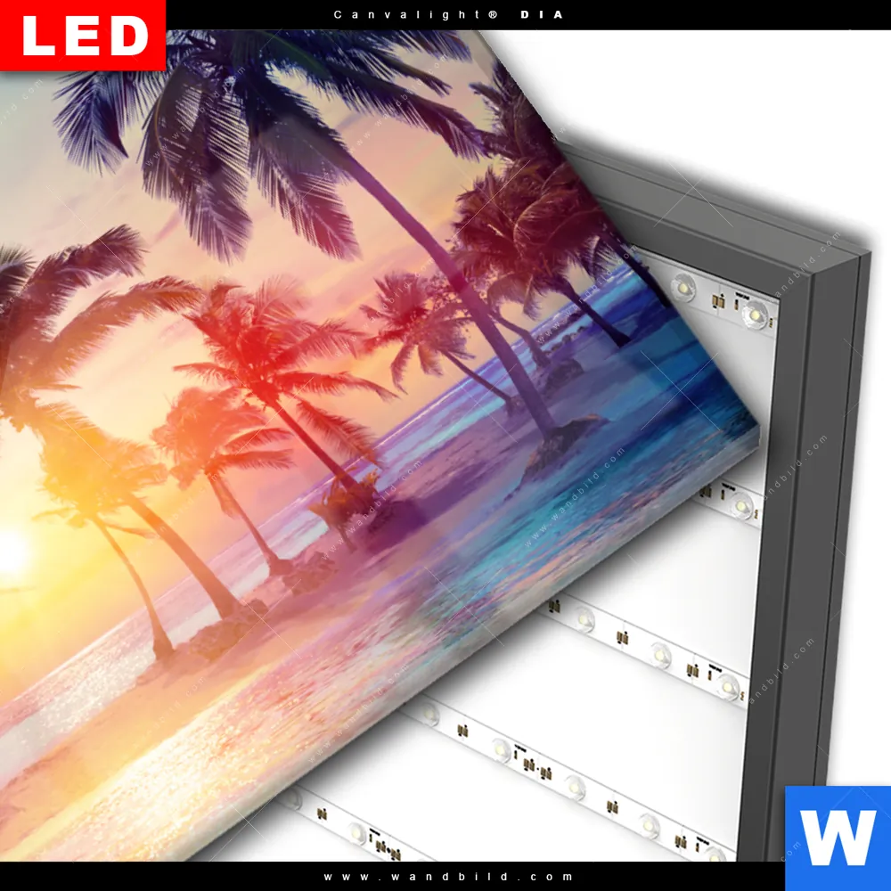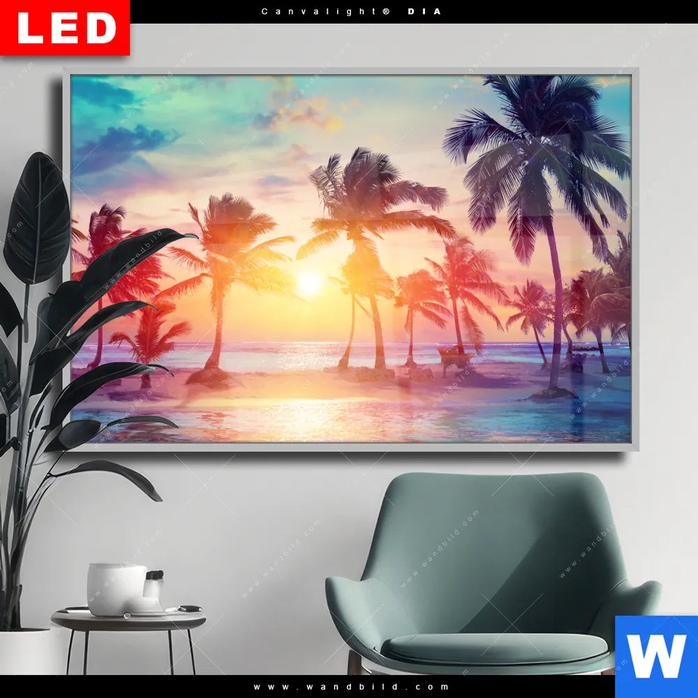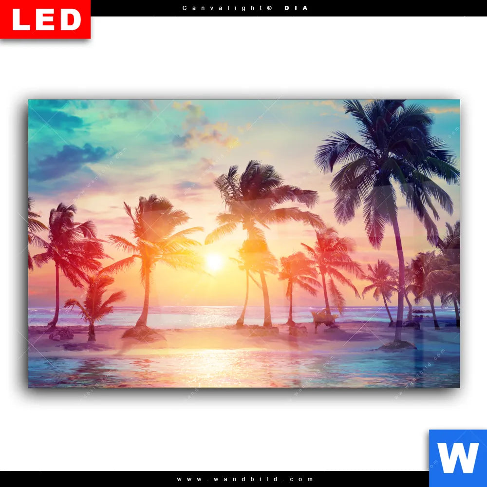 Wechselmotiv Acrylglas Canvalight® DIA | Palmen bei Sonnenuntergang | Querformat