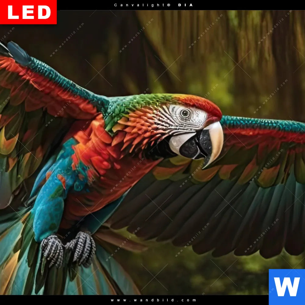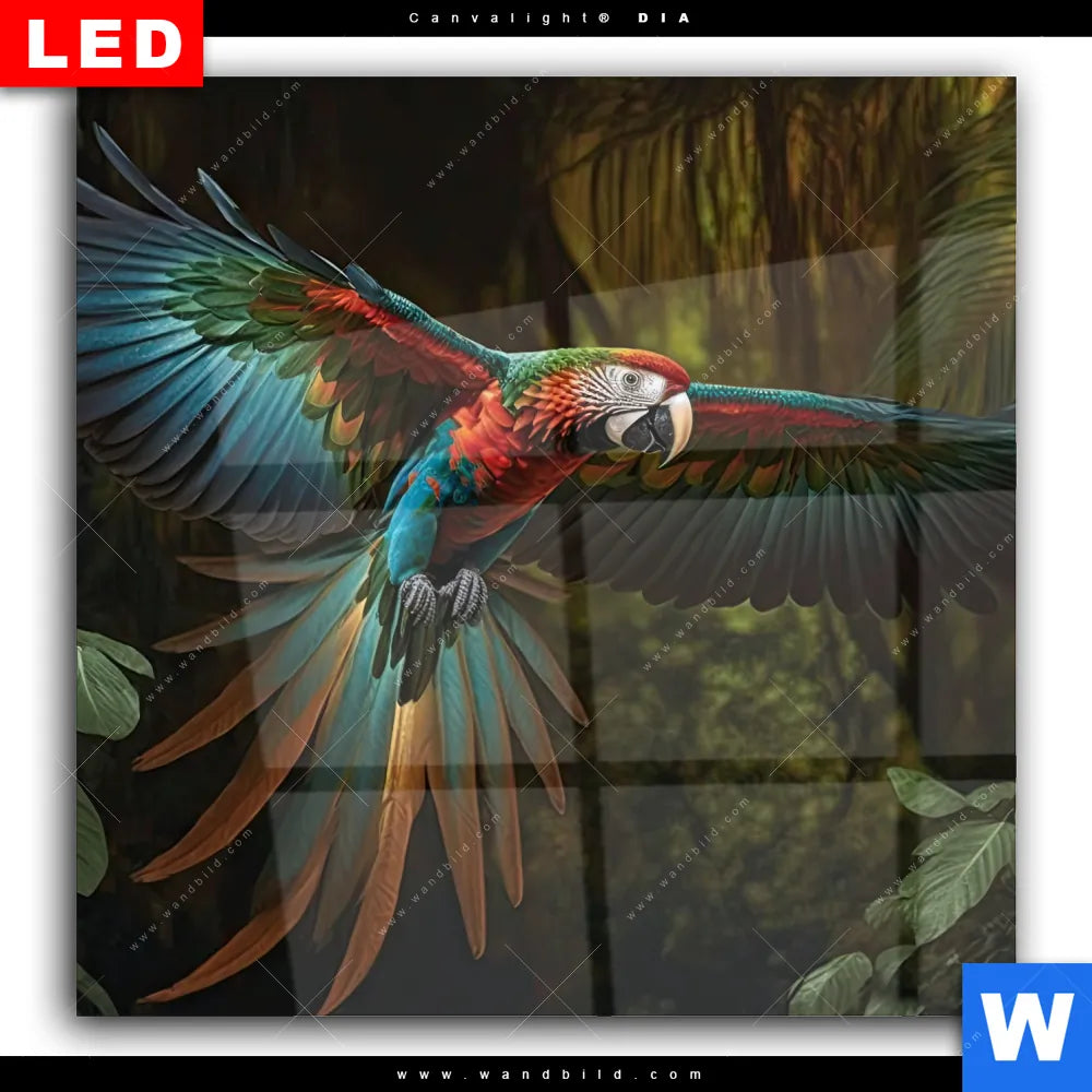Wechselmotiv Acrylglas Canvalight® DIA | Papagei im Flug | Quadrat