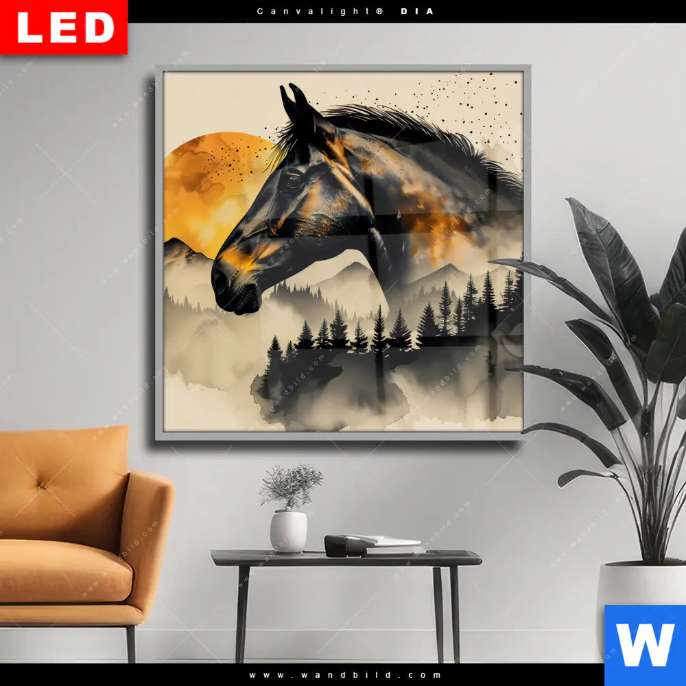 Wechselmotiv Acrylglas Canvalight® DIA | Pferd im Mondschein | Quadrat