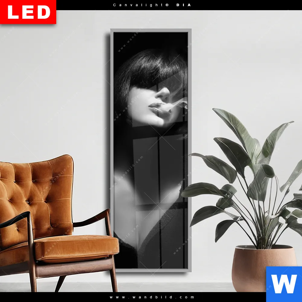 Wechselmotiv Acrylglas Canvalight® DIA | Rauchende Lady | Schmal