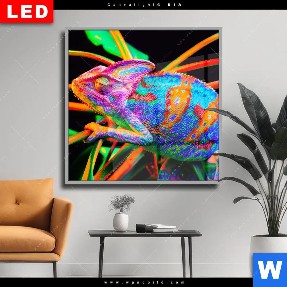 Wechselmotiv Acrylglas Canvalight® DIA | Regenbogen Chamäleon No.2 | Quadrat