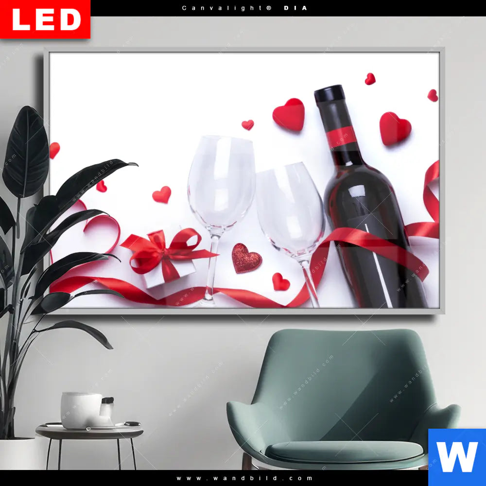 Wechselmotiv Acrylglas Canvalight® DIA | Romantik mit Rotwein | Querformat