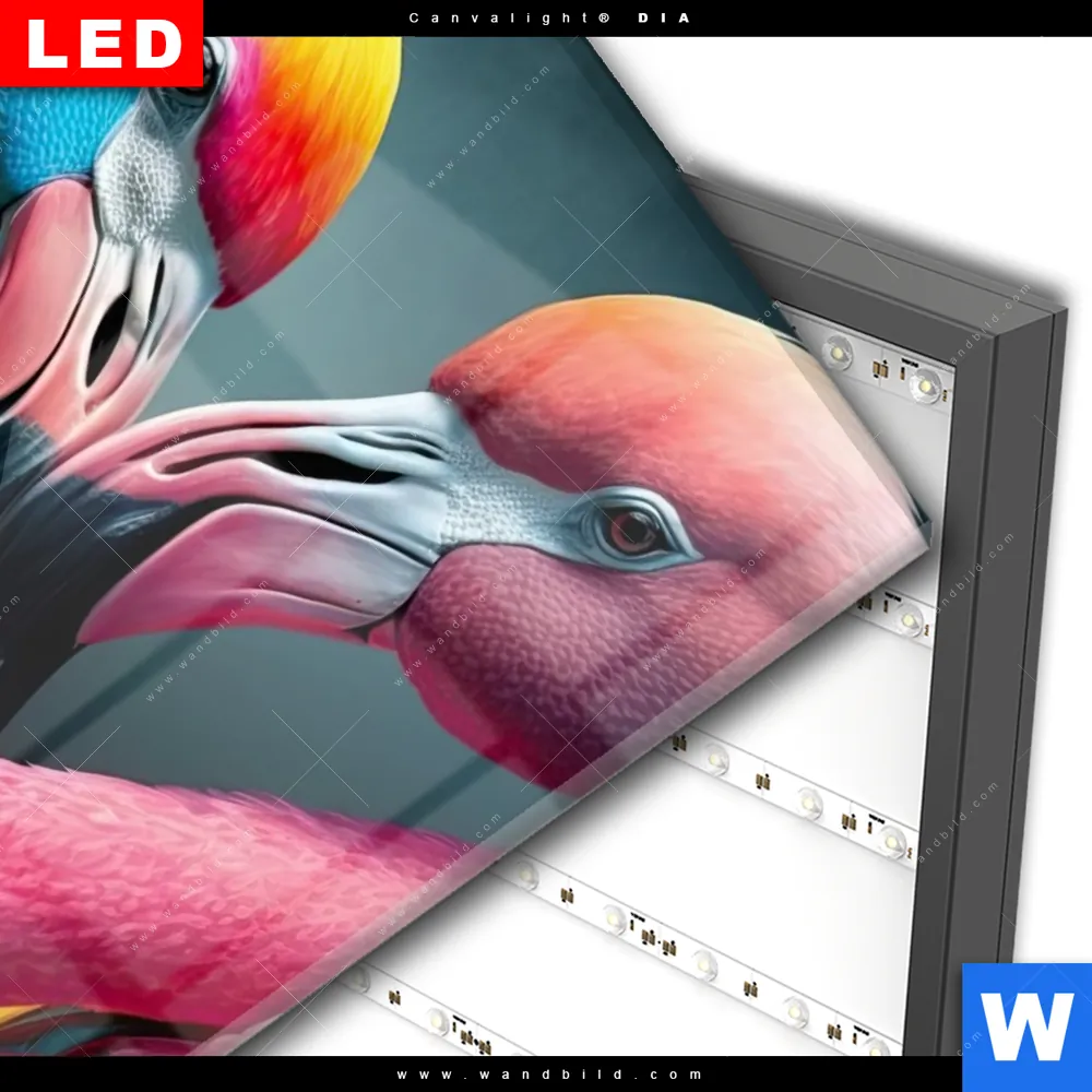 Wechselmotiv Acrylglas Canvalight® DIA | Romantische Flamingos | Hochformat