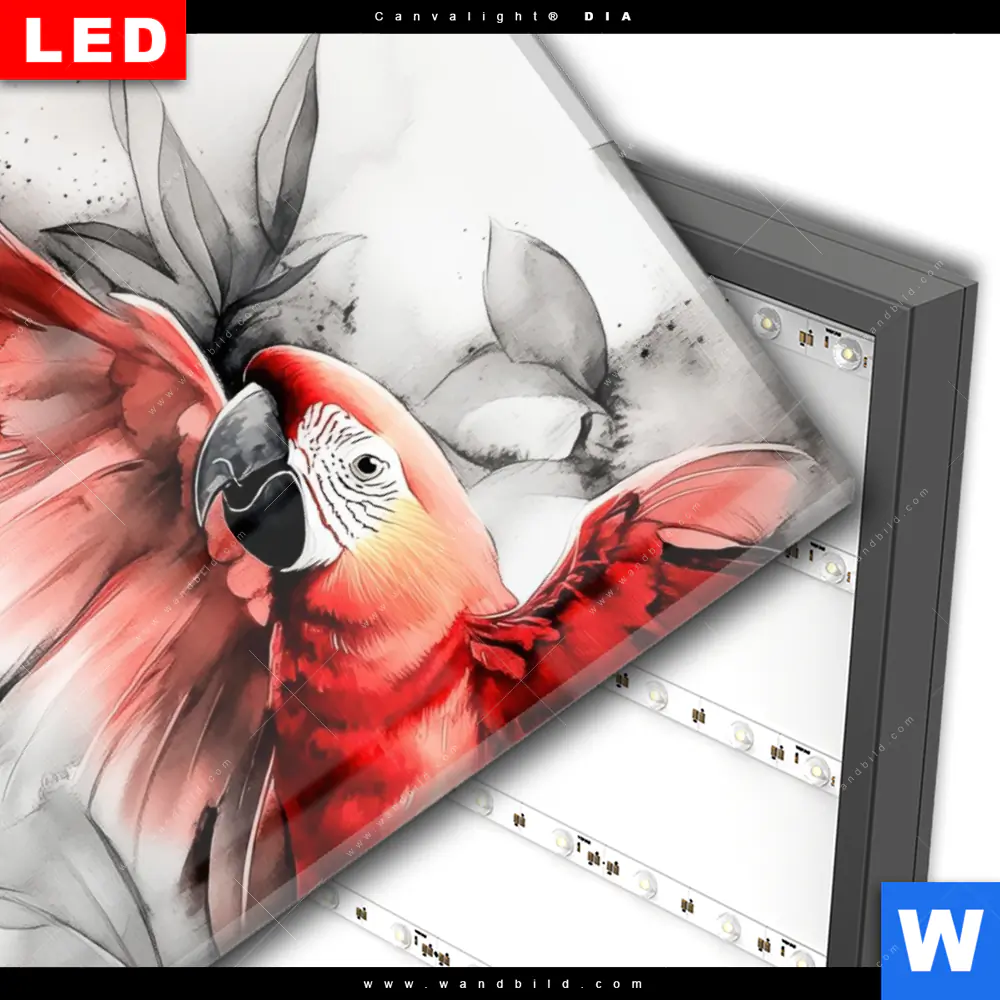 Wechselmotiv Acrylglas Canvalight® DIA | Roter Papagei im Flug | Hochformat