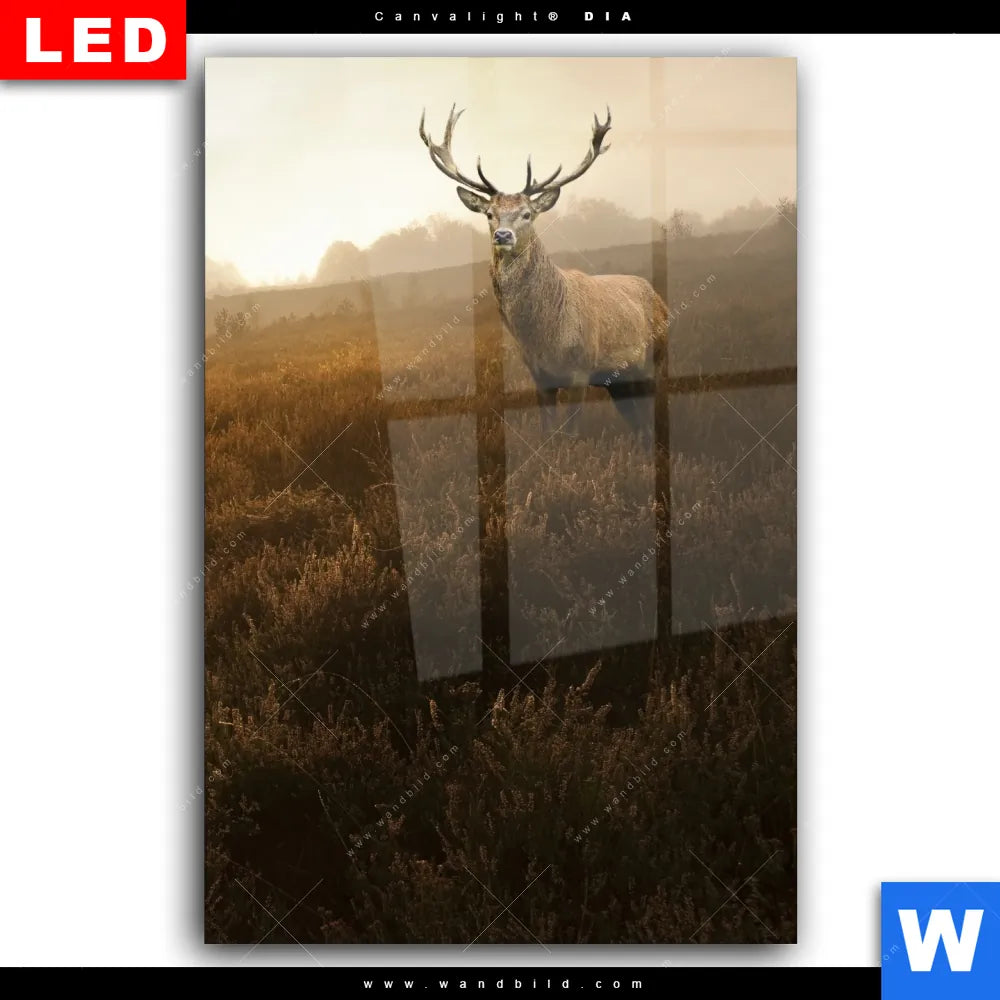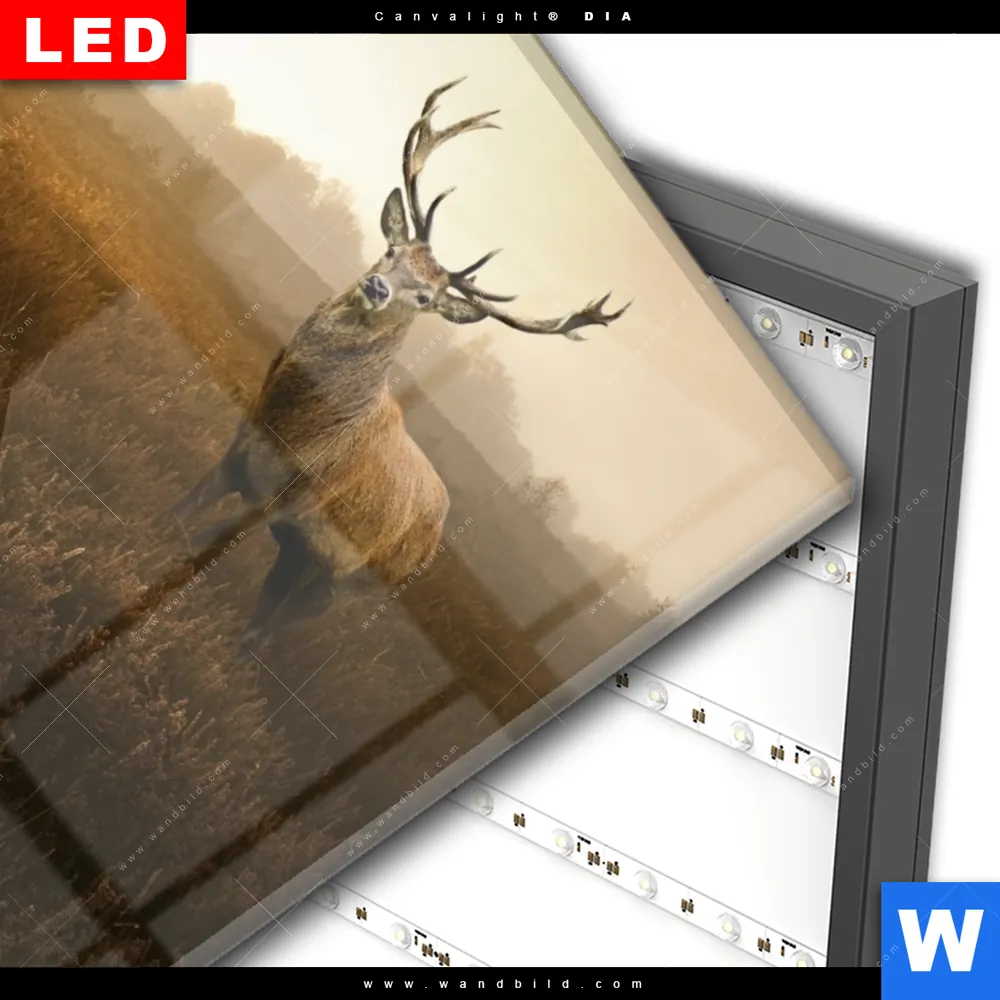 Wechselmotiv Acrylglas Canvalight® DIA | Rothirsch im Nebel | Hochformat