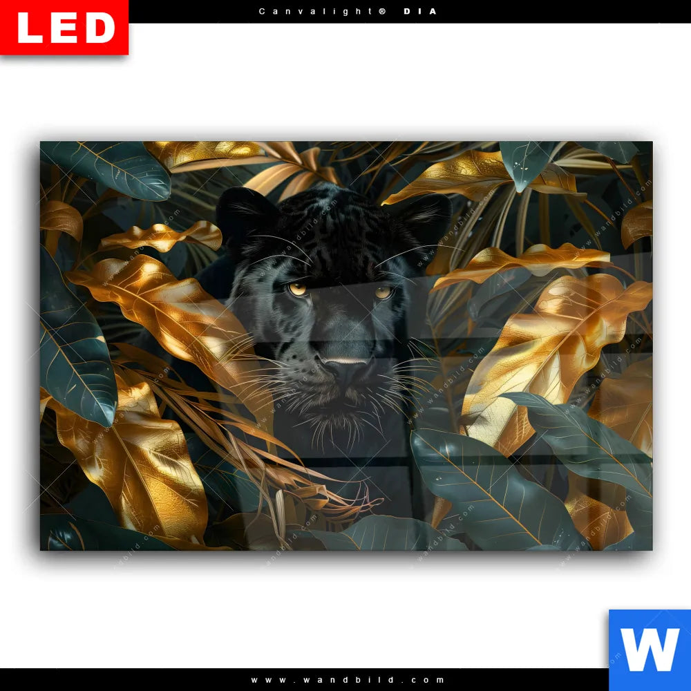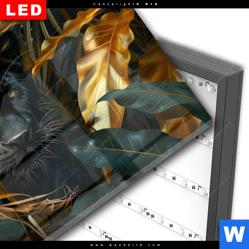 Wechselmotiv Acrylglas Canvalight® DIA | Schwarzer Panther im Dschungel | Querformat