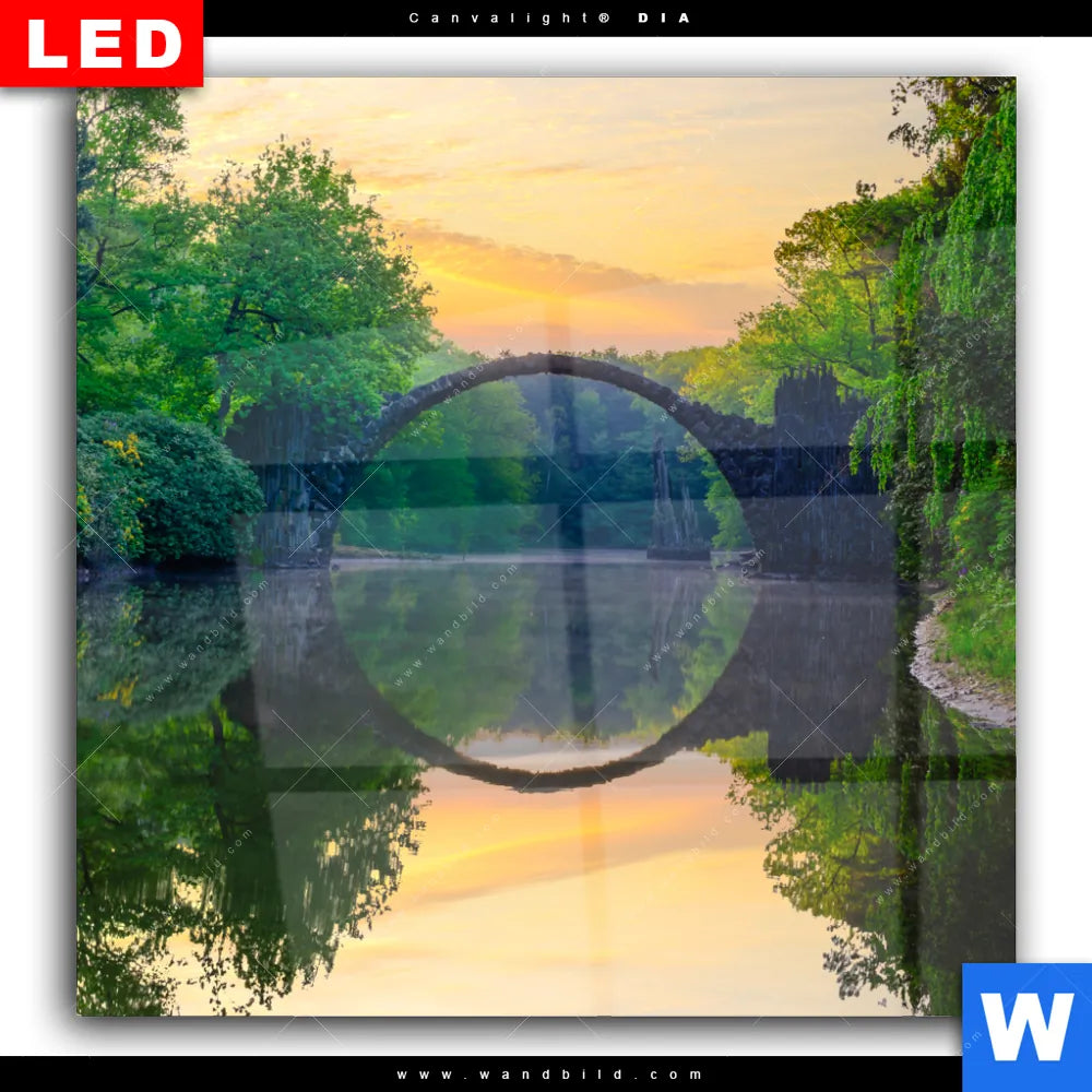 Wechselmotiv Acrylglas Canvalight® DIA | See mit alter Brücke aus Stein | Quadrat