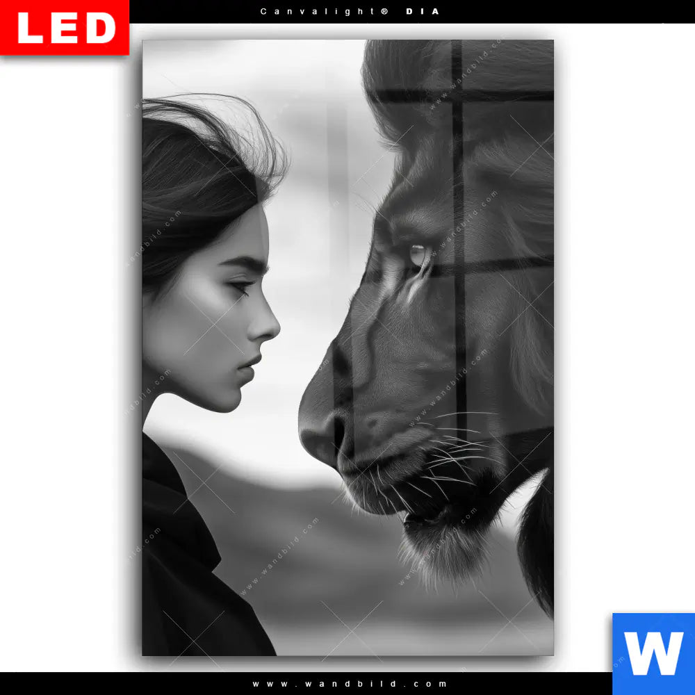 Wechselmotiv Acrylglas Canvalight® DIA | Seelenblick - Löwe & Frau | Hochformat