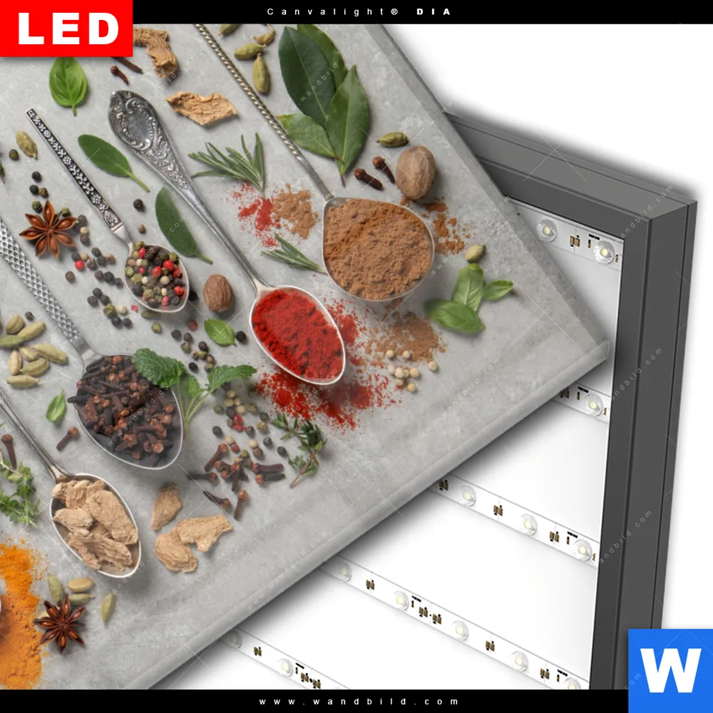 Wechselmotiv Acrylglas Canvalight® DIA | Silberlöffel mit Gewürzen | Querformat
