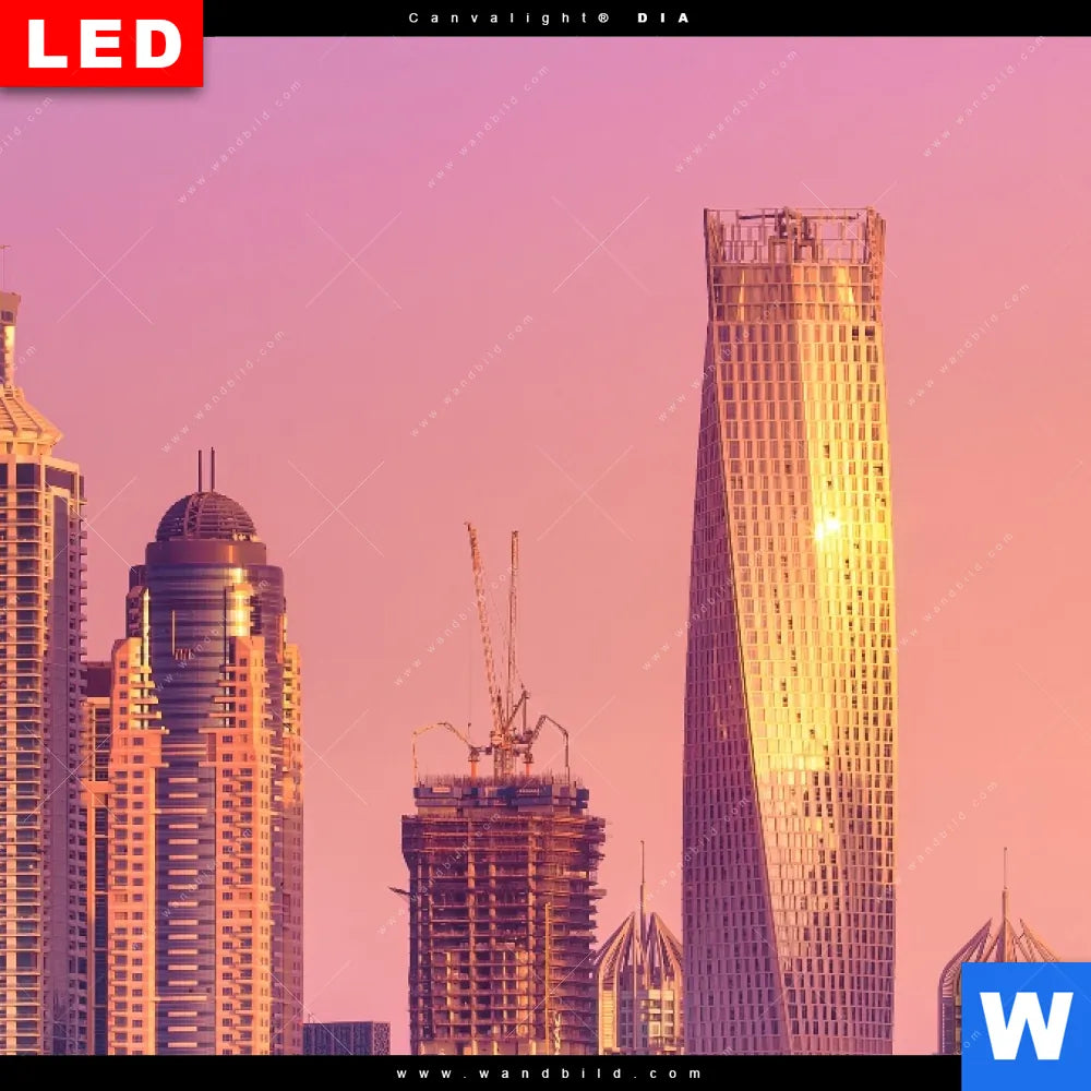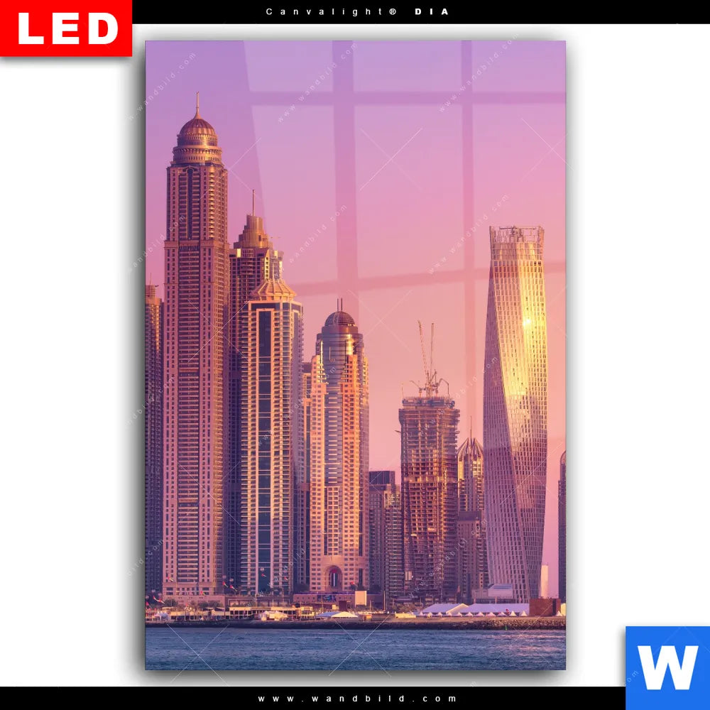 Wechselmotiv Acrylglas Canvalight® DIA | Sonnenaufgang in Dubai | Hochformat