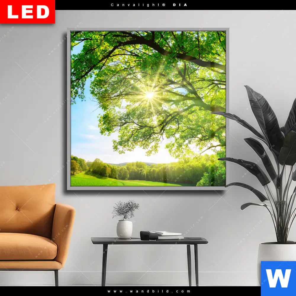 Wechselmotiv Acrylglas Canvalight® DIA | Sonnendurchfluteter Baum | Quadrat