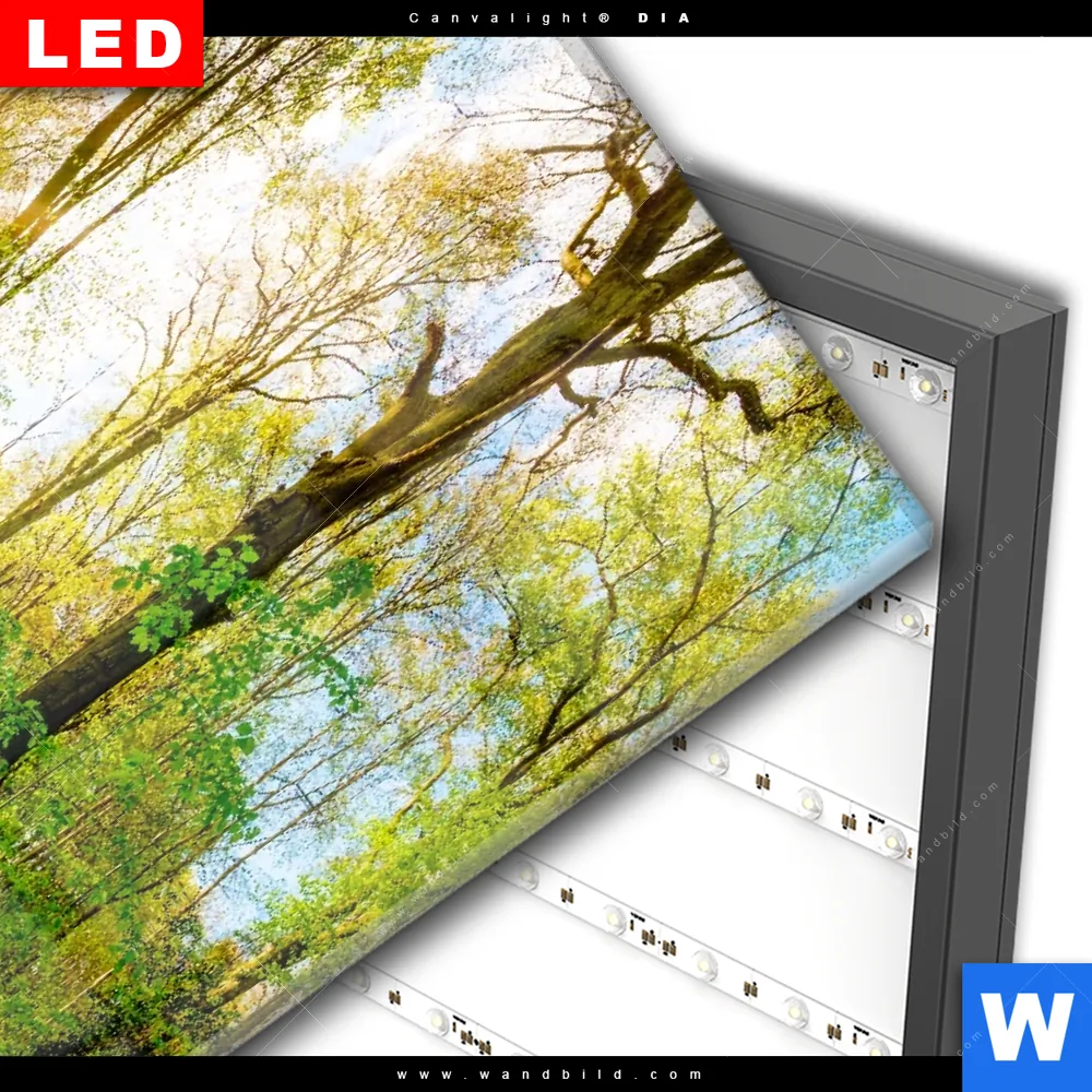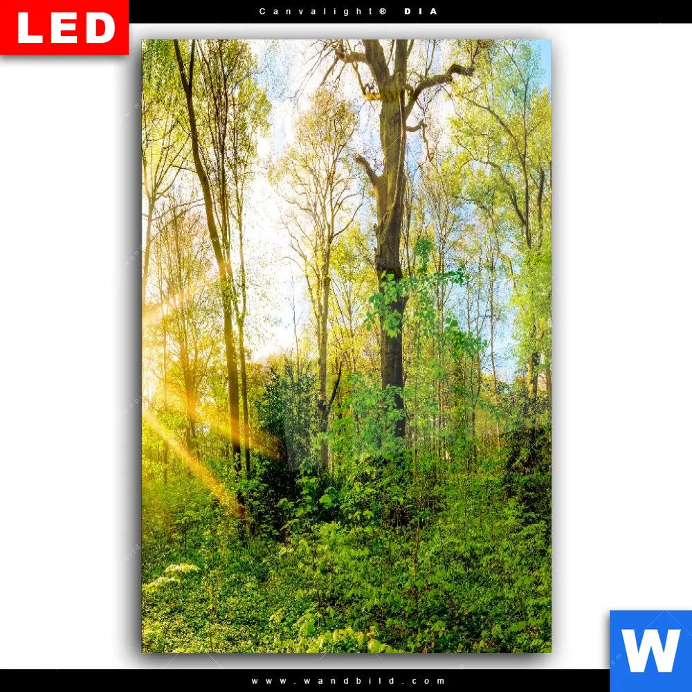 Wechselmotiv Acrylglas Canvalight® DIA | Sonnenlicht im Wald | Hochformat
