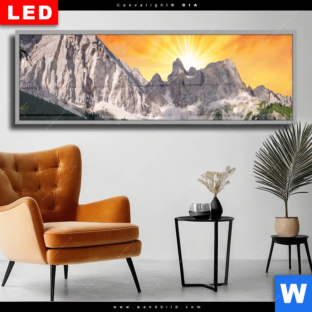 Wechselmotiv Acrylglas Canvalight® DIA | Sonnenuntergang in den Bergen | Panorama