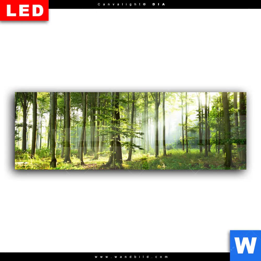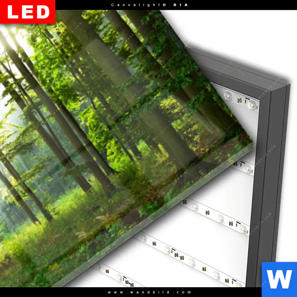 Wechselmotiv Acrylglas Canvalight® DIA | Sonniger Morgen im Wald | Panorama