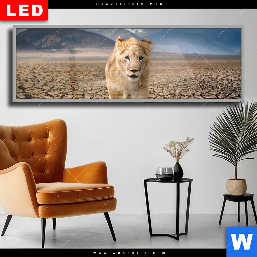 Wechselmotiv Acrylglas Canvalight® DIA | Spiegelbild Löwe & Löwenjunges | Panorama