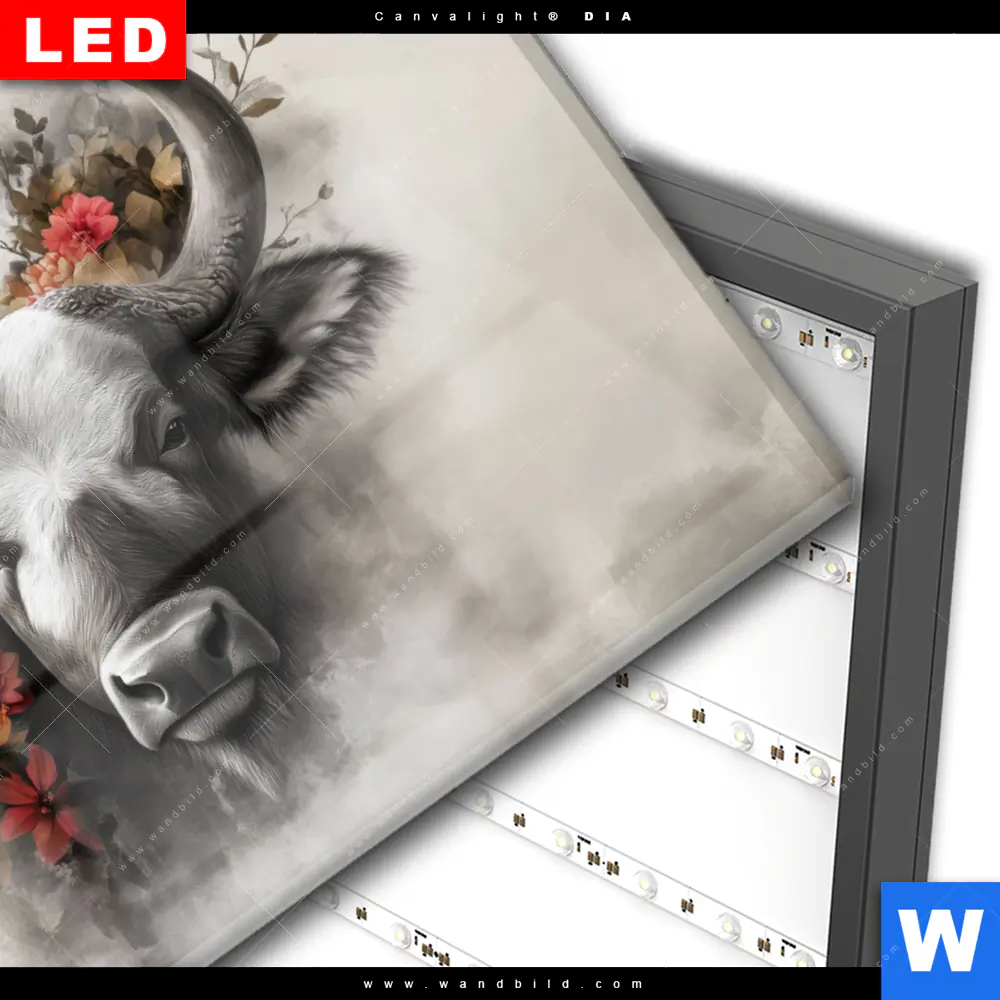 Wechselmotiv Acrylglas Canvalight® DIA | Starker Bulle mit Blumen | Querformat