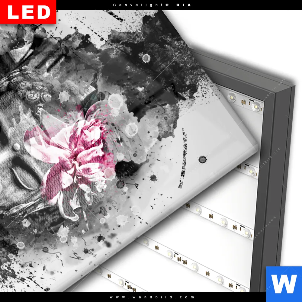 Wechselmotiv Acrylglas Canvalight® DIA | Statue mit Blume - Grunge-Stil | Hochformat