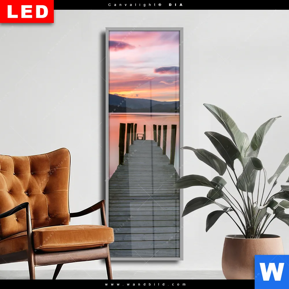 Wechselmotiv Acrylglas Canvalight® DIA | Steg in den Sonnenuntergang | Schmal