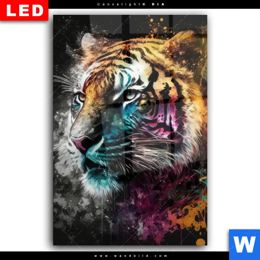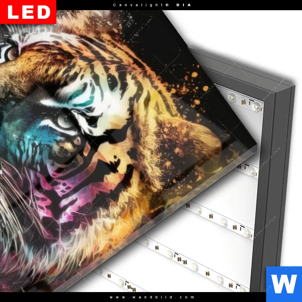 Wechselmotiv Acrylglas Canvalight® DIA | Tiger im Farbrausch | Hochformat