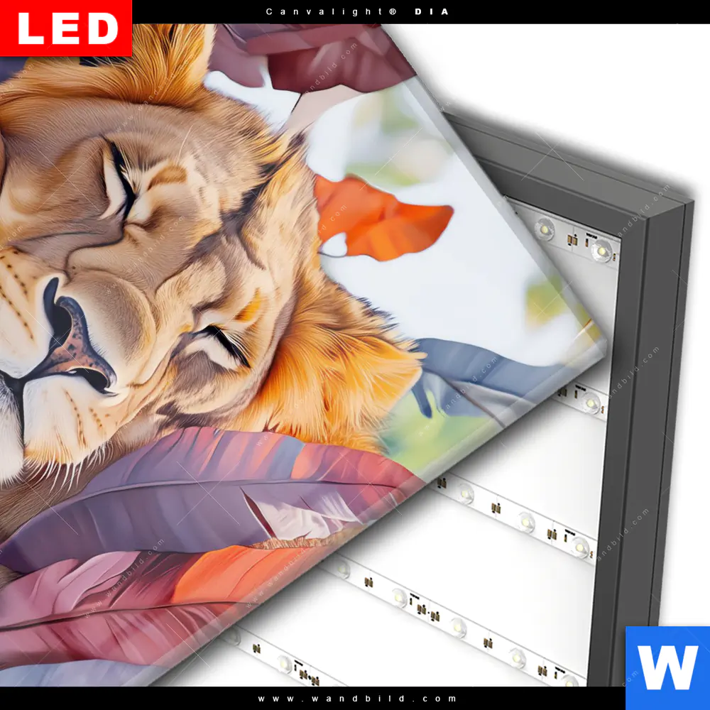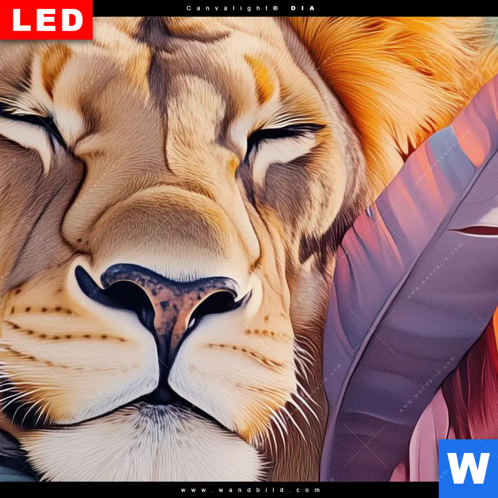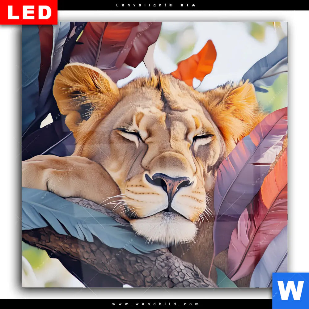 Wechselmotiv Acrylglas Canvalight® DIA | Träumender Löwe im Baum | Quadrat