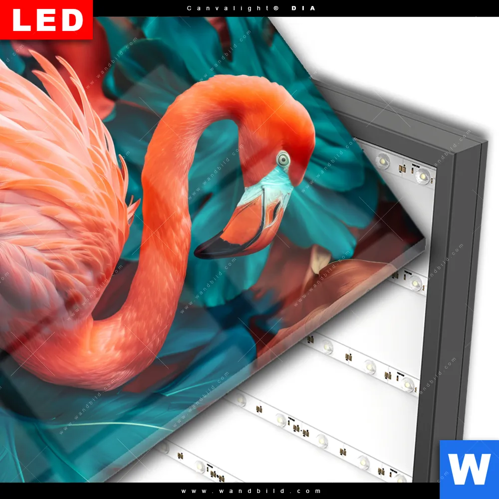 Wechselmotiv Acrylglas Canvalight® DIA | Tropischer Flamingo Traum | Quadrat