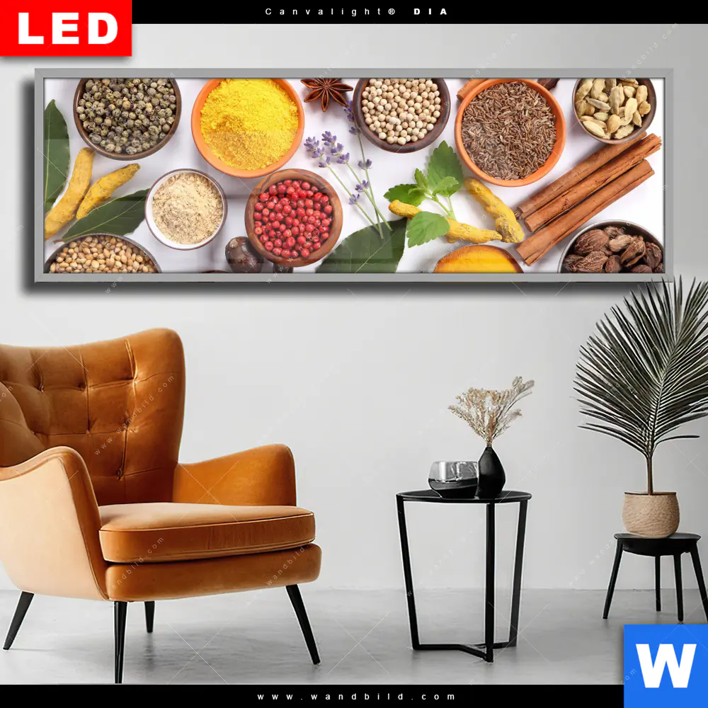Wechselmotiv Acrylglas Canvalight® DIA | Vielfältige Gewürze | Panorama