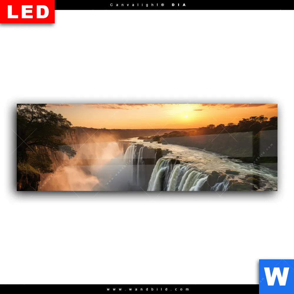 Wechselmotiv Acrylglas Canvalight® DIA | Wasserfall bei Abendsonne | Panorama