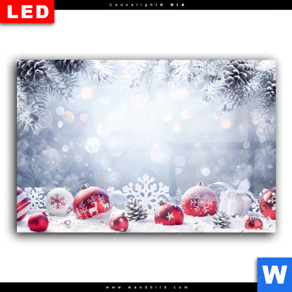 Wechselmotiv Acrylglas Canvalight® DIA | Weihnachtskugeln im Winterwunderland | Querformat
