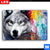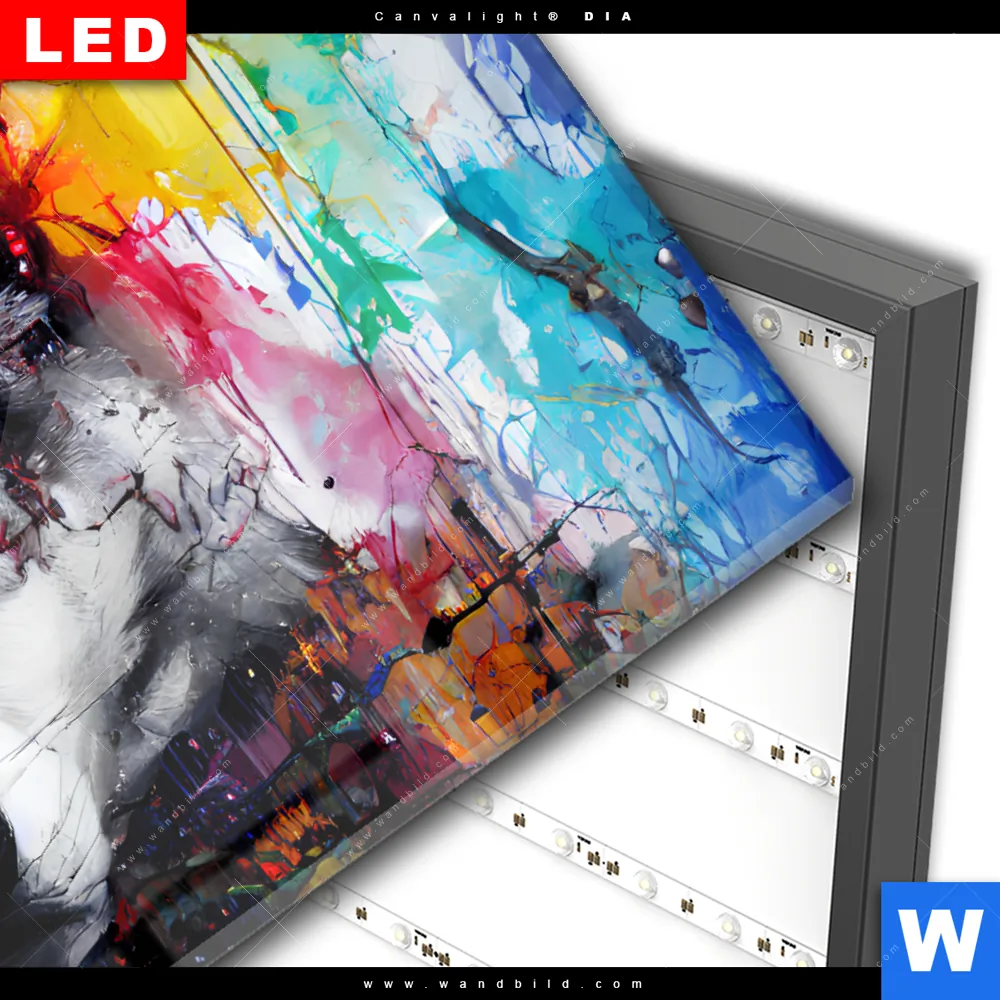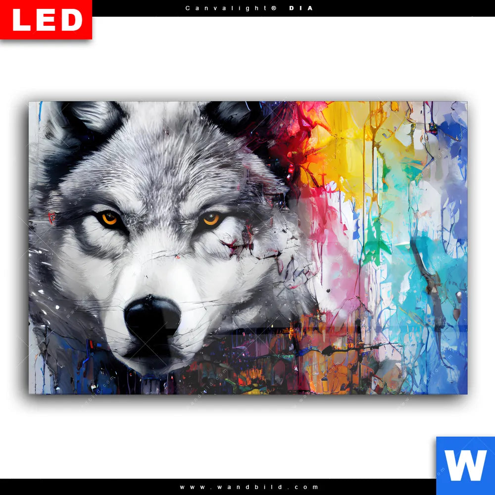 Wechselmotiv Acrylglas Canvalight® DIA | Wolf mit bunten Farbspritzern | Querformat