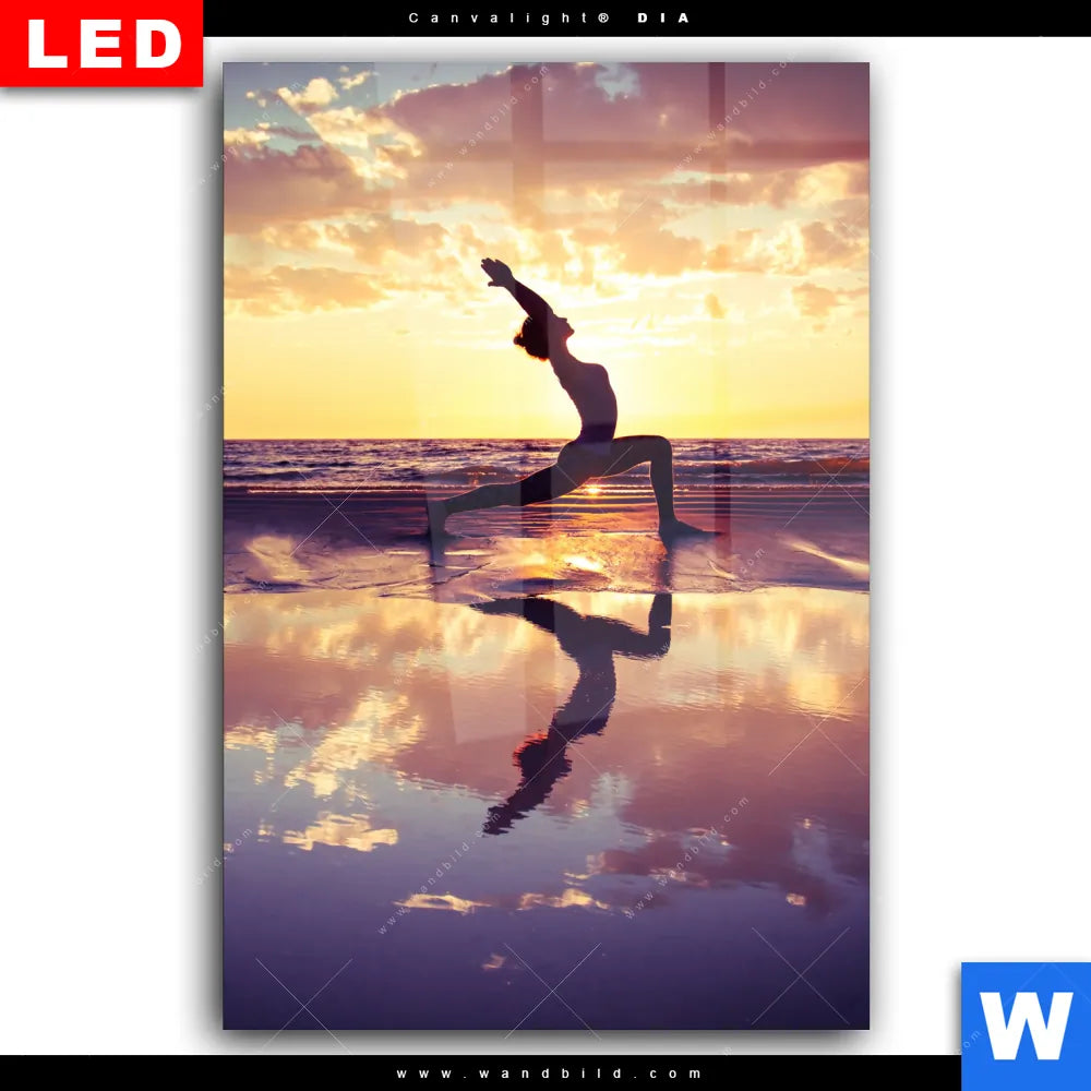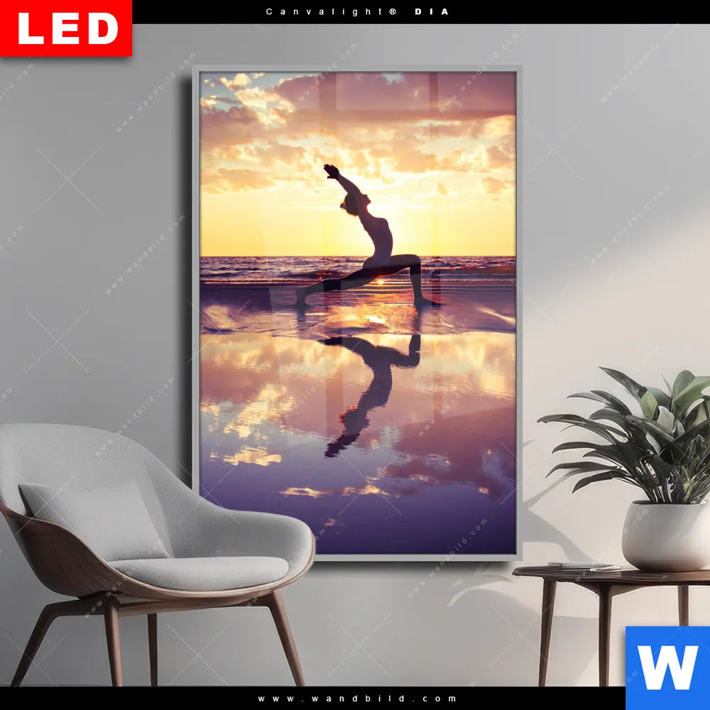 Wechselmotiv Acrylglas Canvalight® DIA | Yoga am lila Strand | Hochformat