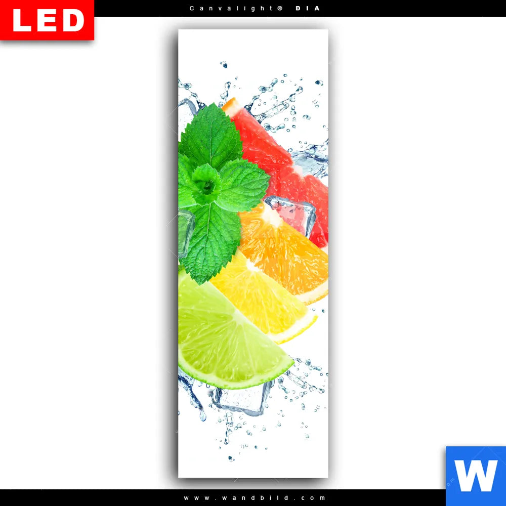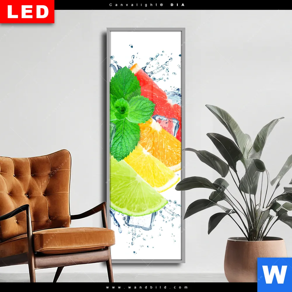 Wechselmotiv Acrylglas Canvalight® DIA | Zitrusfrüchte auf Eis | Schmal