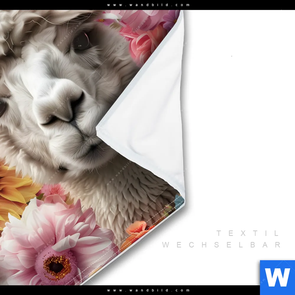 Wechselmotiv Textil | Alpaka mit Blumen | Quadrat