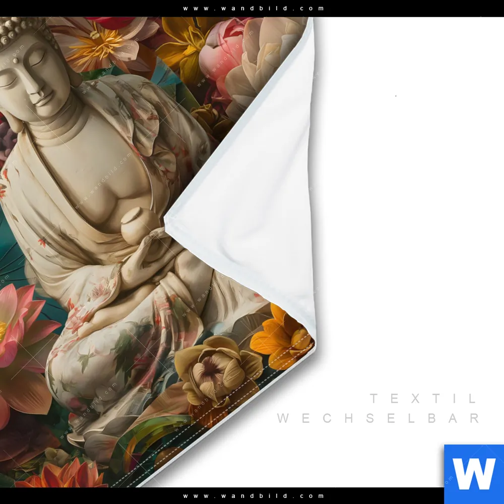 Wechselmotiv Textil | Buddha in farbenfrohen Blumen | Quadrat