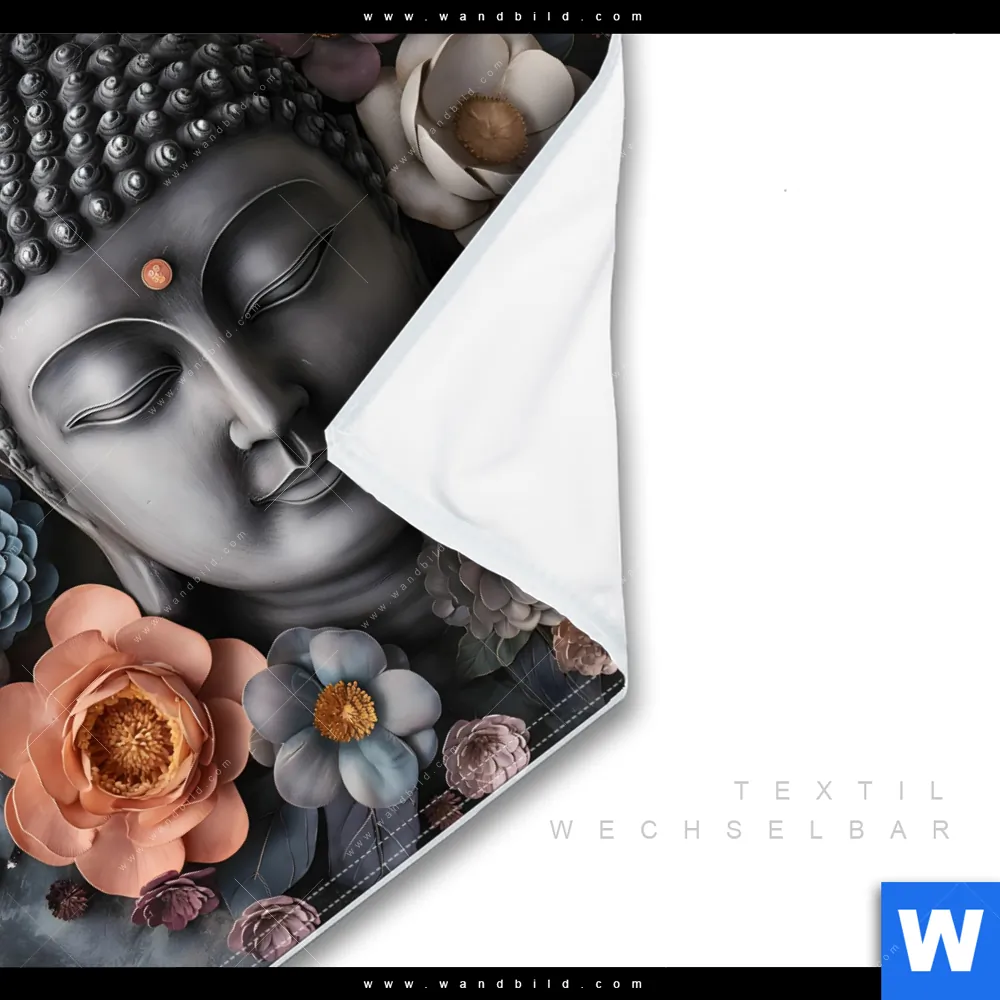 Wechselmotiv Textil | Buddha-Kunst mit Pastellblüten | Quadrat