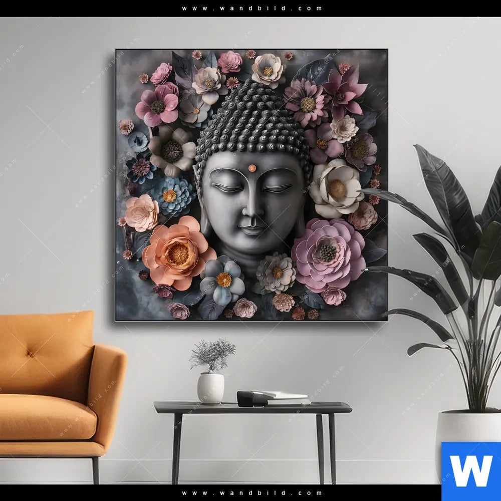 Wechselmotiv | Buddha-Kunst mit Pastellblüten | Quadrat