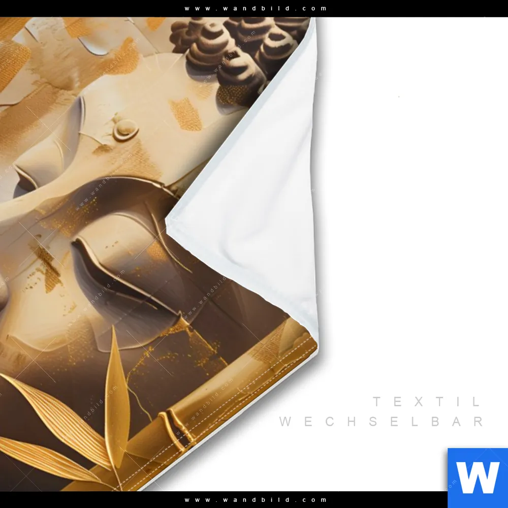 Wechselmotiv Textil | Buddha-Statue im goldenen Bambus | Hochformat