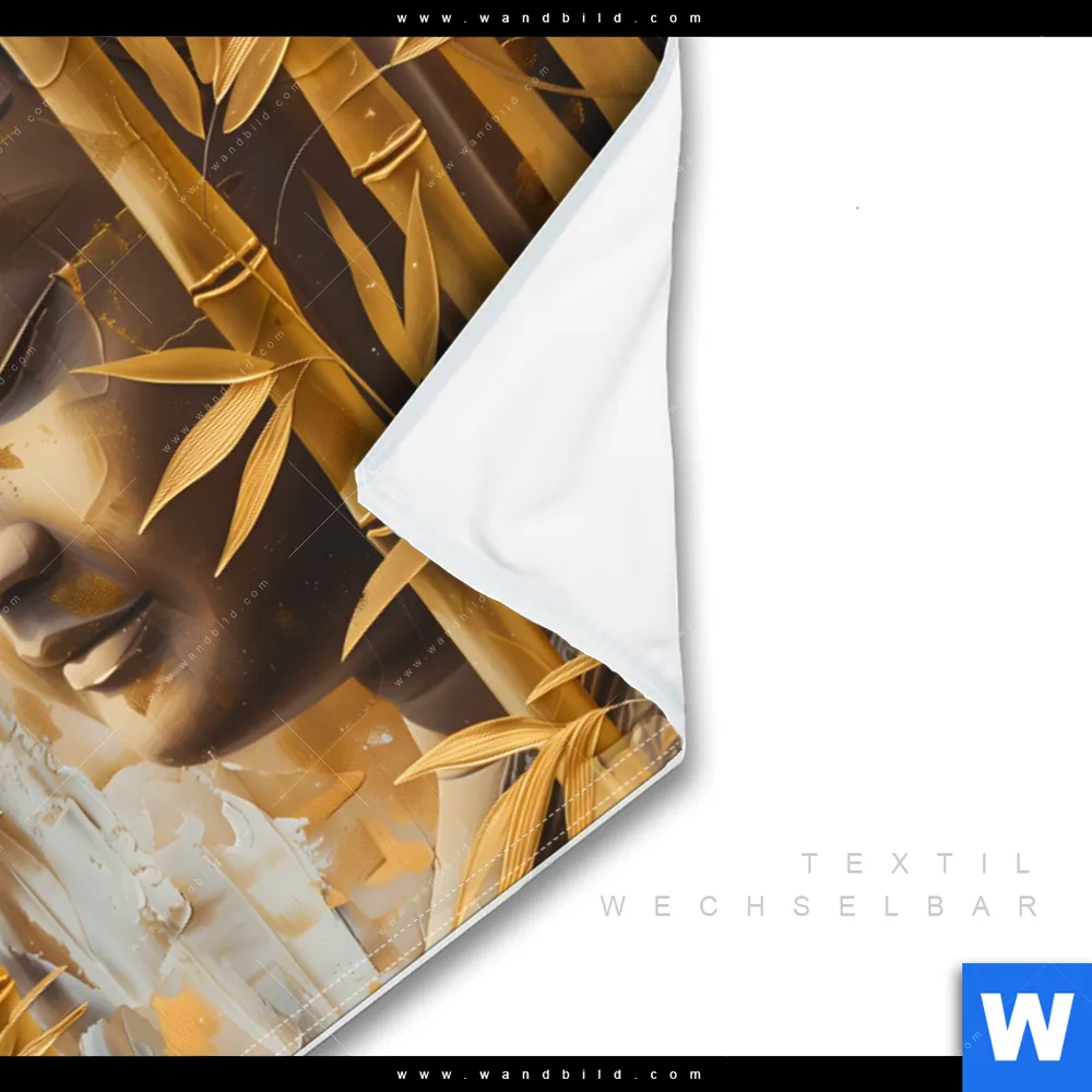 Wechselmotiv Textil | Buddha-Statue im goldenen Bambus | Querformat