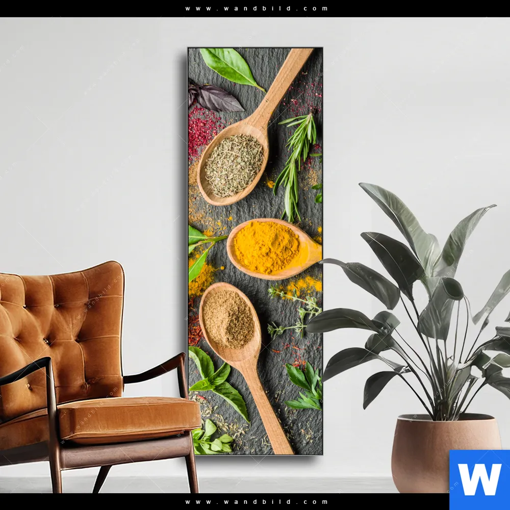 Wechselmotiv Textil | Bunte Gewürze in Holzlöffeln | Schmal