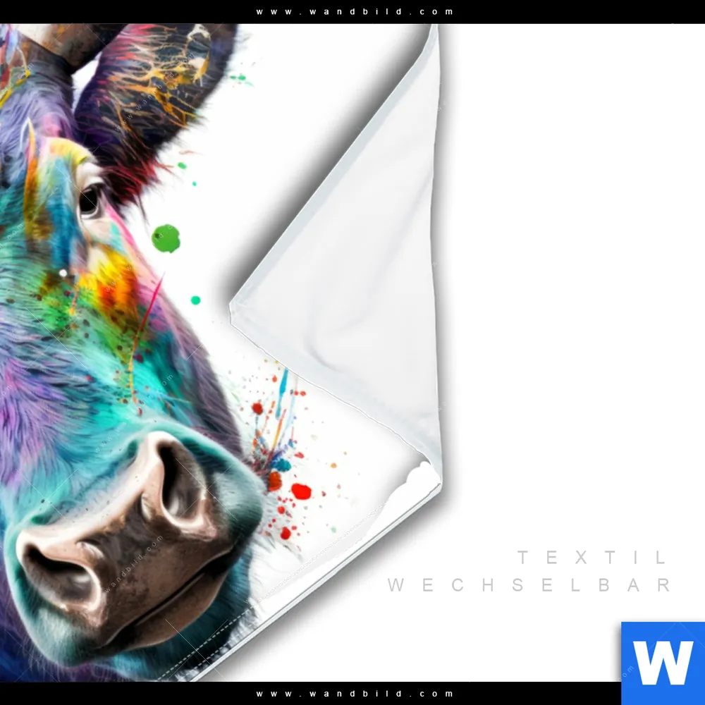 Wechselmotiv Textil | Bunter Stierkopf | Querformat